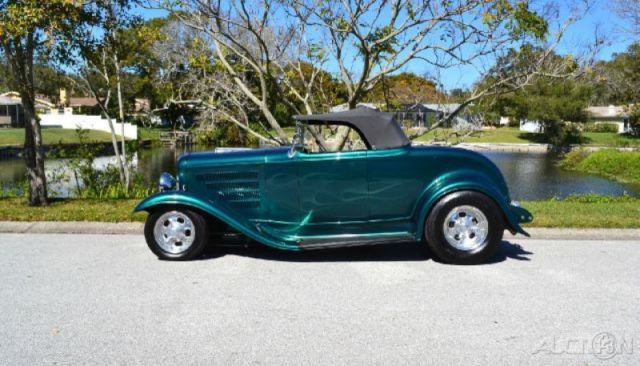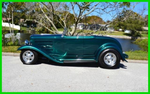 | Doug Sherwood 727-252-9149 1751 Gulf to Bay Blvd. Clearwater Florida 33755 • 1932 Ford Cabriolet Vehicle Information VIN: 18188034 Stock: 8737 Mileage: 5. 45 Color: Green Trans: Automatic Engine: 350 MPG: Drivetrain: 1 of 41 View Large Images Description 1932 Ford Roadeter For Sale ( Custom Built Street Rod ). 350 Edelbrock E street crate engine. HEI electronic ignition. ceramic coated headers. dual exhaust with Flowmaster mufflers. 200R4 automatic overdrive transmission. 3. 73 posi traction rear end. Speedway motors 4 bar front suspension. disc brakes. Weld Rodlite polished aluminum wheels with radial tires. stunning Dupont dark candy green custom paint with ghost flames and hand painted pin stripping. large chrome headlights. led taillights. removable canvas convertible top with glass rear window. ultra leather custom interior and upholstered trunk. tilt steering column. Autometer gauge package. This one of a kind street rod would cost you over $80. 00 to duplicate. Fast. reliable . nd beautiful. this Custom built 32 Ford is ready to impress its new owner!!! Message P. J. s Auto World. Inc. has been in the collector car industry for more than 31 years and we have a great reputation. Every car we sell is inspected. serviced and detailed at no additional cost to the new owner. Your vehicle will arrive. ready to drive and enjoy. We offer financing for our American customers and we can ship to any location via enclosed transporter or by container for our overseas customers. Now is a great time to purchase a car here in the USA! Contact Doug at 1-727-252-9149 or Pete at 727-686-7932 for more information on this beautifully maintained vehicle!! Find out why we're "The Classic Car Store founded on old fashioned values". HAPPY BIDDING!! PJ's Auto World is a JJ Best Authorized dealer if you would like to be pre-approved on a classic car loan contact us or JJ Best direct at 1-800-872-1965 and tell them you are looking at one of our cars!!! Options and Standard Features Basic Information VIN Number: 18188034 Stock Number: 8737 Model Year: 1932 Make: Ford Model: Cabriolet Vehicle Trim: Street Rod Exterior Color: Green Interior Color: Gray Engine Engine Description: 350 DriveTrain Transmission: Automatic Contact PJ's Auto World 1751 Gulf to Bay Blvd. Clearwater Florida 33755 View Map Ask for:Doug Sherwood Primary Phone:727-252-9149 secondary phone:727-686-7932 Contact: •Contact Us • Apply Now Secure Credit Application Applying for a vehicle loan online is one of the quickest and easiest application methods. Our secure application is easy to complete. all you need are a few personal and employment details. •Credit Application •Directions to Dealer •Contact Us Terms Placing a Bid: Your bid constitutes a legally binding contract to purchase this vehicle. Please do not bid if you're not seriously interested or financially able to purchase this vehicle. Please read eBay's User AgreementPJ's Auto World reserves the right to. Obtain and verify the registered information of all users who bid on this auction. Cancel any and all bids at our discretion. or end the auction early if necessary. Bidders Age: You must be 18 years of age or older to Bid. Special eBay Bid Retraction Rules: Please read eBay's "Retracting a Bid" If you place a bid before the last 12-hour period of the auction: You may retract that bid before that last 12-hour period but only for exceptional circumstances. You will not be allowed to retract that bid during the last 12-hour period of the auction. If you place a bid during the last 12-hour period of the auction: You will be allowed to retract the bid for exceptional circumstances but only if you do so within one hour after placing the bid. Funds & Financing: For help in arranging for a Pre-Approved loan or for any questions please e-mail or phone Doug at727-252-9149 prior to bidding. Buyers Inspection: PJ's Auto World has done our best to disclose all information known about this vehicle for auction. PJ's Auto World welcomes a buyers inspection. If you plan to have a buyers inspection. please make sure you inspect the vehicle prior to the auction ending. Inspection fees if any are Buyers responsibility. Representations and Warranties made by seller: This vehicle is being sold "as is". Manufacturer's warranties may still apply. Extended warranty may be available. e-mail or phone Doug at 727-252-9149 for details. No representations or warranties are made by seller. nor are any representations or warranties relied upon by bidders in making bids. Taxes and Registration fees: Out of state buyers are responsible for all state. county. city taxes and fees. as well as title service fees in the state that the vehicle will be registered. All taxes and fees must be paid in full in order for vehicle to be titled and registered. Title Information: Vehicles titles may be held by banks or lenders as collateral for loans. In many cases there is a delay in receiving the original instruments up to 21 days from the time we pay a vehicle off. While we usually have all titles in our possession at closing. there are occasions where we may be waiting for them to arrive. If payment is made by cashier's or personal checks we will hold all titles for 10 days or until funds have cleared. Shipping & Delivery: All shipping charges are buyer's responsibility. PJ's Auto World will help with shipping arrangements but will not be responsible in any way for claims arising from shipping damage!Licensed Carriers are generally insured for $3. 00. 00. 00. We assume no responsibility for damages incurred after the vehicle leaves our showroom. All shipping arrangements are provided by PJ's Auto World as a courtesy. We are not affiliated with any carrier. Any claims or other communication regarding shipment of vehicles will be between you and the shipper. not with PJ's Auto World. The amount of time it takes for delivery is dependent on the carrier. but is generally 7-14 days from the date the vehicle is picked up