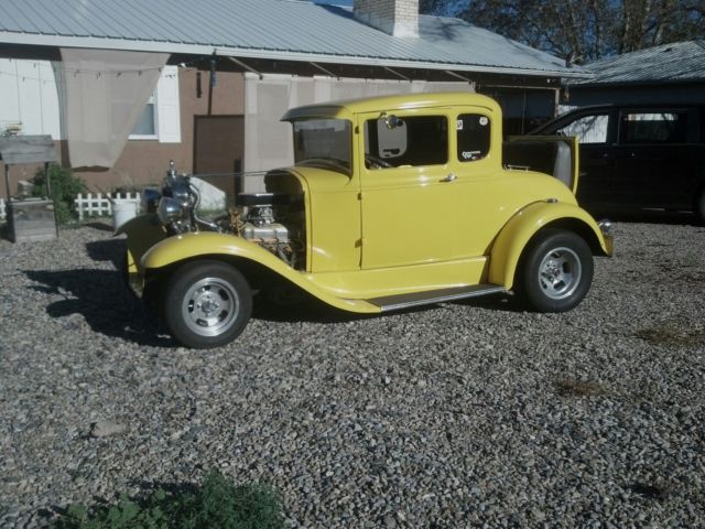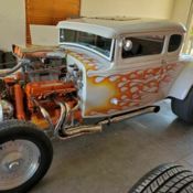 | This is an ALL STEEL- ALL Ford 5 window coupe with Rumble seatA "peppy" 302 cu in with a C-4 transmissionMustang II front end with disc brakes8 inch diff Ididit steering columnLokar shifterdual gas tankstinted windowsnew edlebrock carbI have the build sheets and hoodbuilt in California in the late 1990's. |