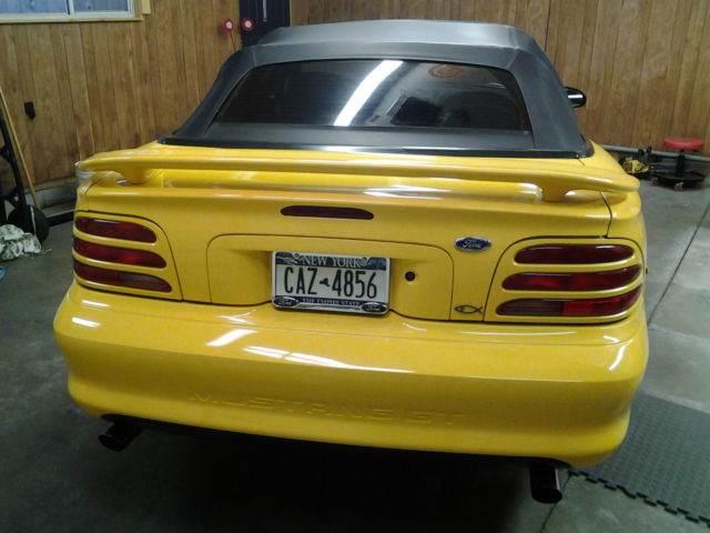 1994 Mustang GT 5.0 Convertible 62036 ORIGINAL MILESPampered Adult Owned all its life. This car speaks for itself EXCELLENT SHAPE!!!! AutomaticPower(TOP WINDOWS LOCKS MIRRORS & DRIVERS SEAT) Mach Stereo with CD & Cassette Air Conditioning( BLOWS COLD) Driving Lights Cobra Chrome Wheels and Cooper Zeon Directional Tires Leather Styling Bar Leather Seats(Excellent Shape) New Brakes & Drilled Rotors for cooling Front & Back New Shocks all around New Plugs Wires Cap & Rotor equipped with Cold Air Induction Leather Hard Convertible Boot .New battery. All Fluids and Filers Changed (Trans Radiator Engine & Rear Differential) This car has never seen Rain Or Snow. No Excuses you won't be disappointed Car get compliments ever where we take it people think it new. Drive any where. Engine Body & Underneath Spotless. No WARRANTY'S or GUARANTIES EXPRESSED OR PROVIDED AS IS! Buyer is responsible for pickup or shipping. $500.00 Deposit on Close of Auction. Bank Check Or Cash upon pick up. Car & Title do not leave with out PAYMENT IN FULL. Car is advertised locally so Seller has right to end auction at any time. Any Questions ph. 315-225-3086. Car is Located in Myrtle Beach SC 29575.