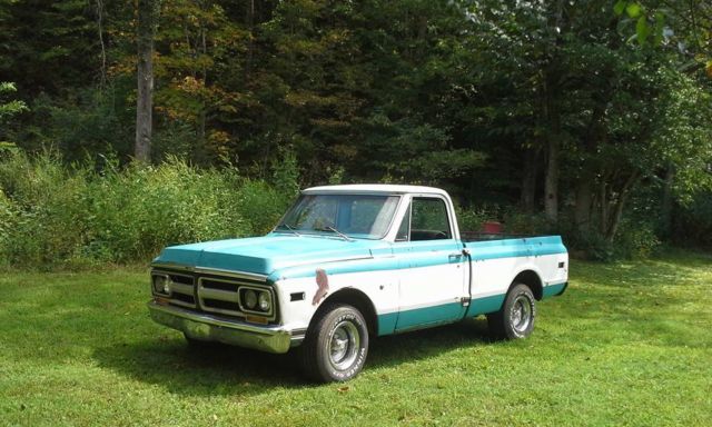 1972 Gmc truck, wd, hort wheel base. Truck has a 383 stroker, agle rotating assembly, RP studs and bolts, delbrock aluminum heads, owards racing roller rockers, igh torque starter, ild cam, delbrock aluminum intake and Edelbrock carb. Full length headers, " exhaust out the rear of the truck. Built 350 turbo trans with shift kit and stahl convertor. 10 bolt rear end with a stock ear ratio (3:08 If I remember correctly). The truck is pretty solid, few small rust places here and there, omplete interior, he truck runs and drives great. Paint is dull, nd some surface rust. I can get any close up pictures, r any certain area pictures if anyone wants. **The truck is for sale locally, reserve the right to close the auction at anytime**