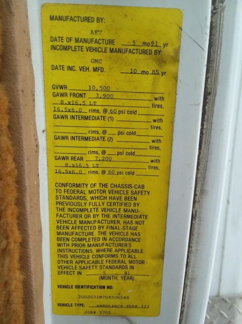 | 1986 GMC ambulance. It has a 350 small block. This thing runs great. Has a great shifting turbo 400 transmission. And a 1 ton axle. Call or text. It has 87,000 for millage. Was partial decommissioned when I bought it. |