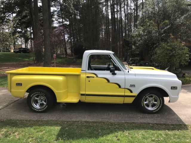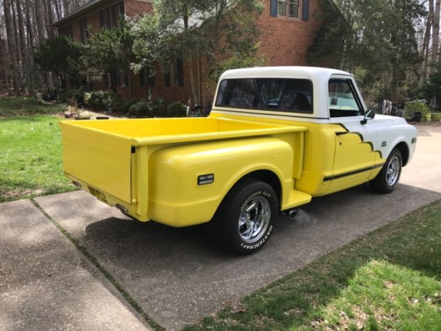 Great running 1971 GMC C10 stepside short bed pickup, 396 Big Block, automatic T350, ps,pb, beautiful wood bed, bucket seats, moonroof, rolled front/rear bumpers, custom grill, LED tail lights, headers, dual stainless exhaust, stainless rear differential cover, chrome turbo type wheels, disc brakes up front, aftermarket radio and speakers, new carpet, new gas tank and sending unit. Runs and sounds great. Clean and clear NC title. Feel free to call or msg anytime with any questions. 919-six two three-4386.