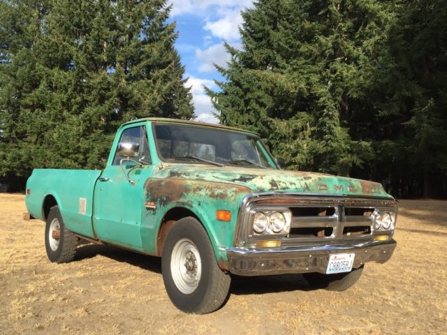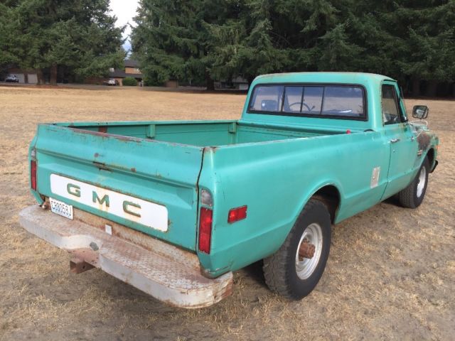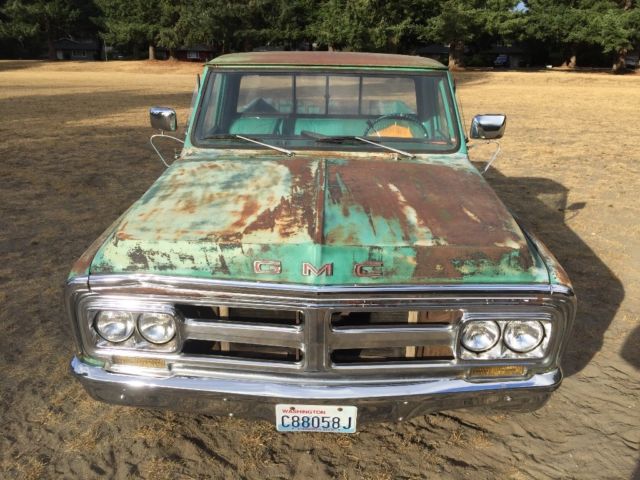 NO RESERVE !! 1972 GMC 2500 CUSTOM CLEAR TITTLE IN MY NAME!! V8 small block Quadra jet 4 barrel, Automatic, power steering, power Disc brakes, duel batteries, three fuel tanks, large rear sway bar, rear slider window, head light & blinkers & brake lights work, runs and drives good, nice truck see pictures for condition! Lots of patina, rust in door sills, and under both batteries, Iner fenders and front fenders - not real bad. In my opinion!! Cracked windshield, I can help get it on a car hauler or you are welcome to pay upon pick up in person. All three fuel tanks should be flushed or replaced due to extensive no run time. Truck sat for 12 years before I obtained it! I run it on the can shown in bed.