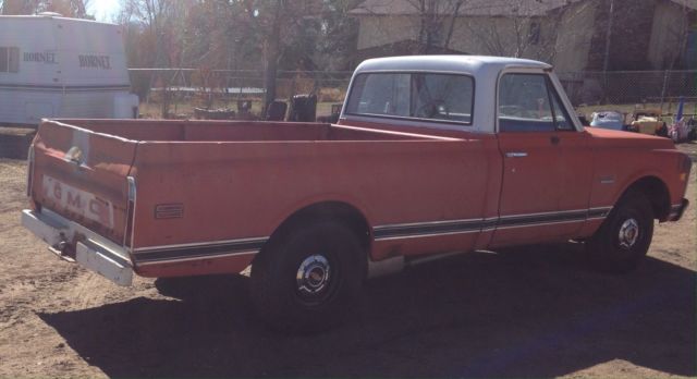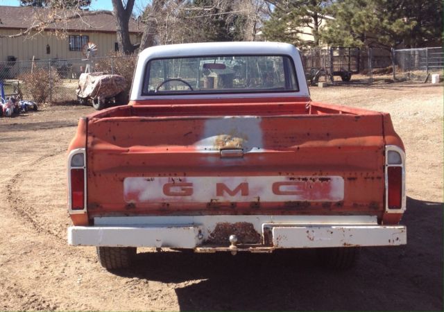 | V 8 350 GMC 1/2 TON PICKUP. 3 SPEED COLUMN SHIFT. RUSTY ROCKER PANELS. RUNS. GOOD TITLE |