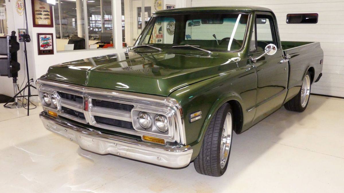 Cruisin' Classics is proud to present this 1970 GMC Sierra 1500. This beauty has been restored meticulously and it shows. It retains its original cab corners and rockers, and you can tell it has been cared for since day one. Under the hood is a stock 350 C.I V8, which is dated 1970. It is an era correct engine. This truck, also has factory air conditioning which was a rare option in these days. Back in 1970, trucks were work trucks. This one however, was quite luxurious for its time. It is a factory Dark Olive Green Metallic truck, and it was repainted the same color. This truck is exceptionally easy to drive, with power steering, and added power disc brakes. Included with the truck, is the original Protect-O-Plate, bill of sale, and the first temp tag registration from when it left the dealer new. Let's dive a little further into the details of this fine machine. The mileage is 96,930 miles and is actual. ENGINE 350 C.I V8 Casting: 3970010 Suffix: TAX 1970 Quadrajet Carburetor Stock Steel Manifolds Points Ignition TRANSMISSION TH350 3 Speed Automatic Column Shift REAR END 12 Bolt Open Differential SUSPENSION Lowered 3 Front Lowered 5 Rear 5 Lug Swapped Disc Brakes Front Drum Rear EXTERIOR Slick Dark Olive Green Metallic Paint ( Factory Color) Lowered Chrome Front & Rear Bumpers Sport Rear Bumper Original Cab Corners and Rockers Bed Floor Painted Body Color- Slick Paint Smooth Tailgate Correct GMC Bumper Eyebrow Headlight Covers Dual Mirrors Original Stainless Grill INTERIOR Green Bench Seat, Houndstooth Inserts Factory Air Cab (Functioning) Green Vinyl Correct Door Panels New Green Carpet Functioning Dome Light New Dash Pad Dash is Original Paint Aftermarket AM/FM/CD Player Overall, this GMC is a fantastic driver that is a show stopper where ever it may go. Many Chevrolets were made this year, but you rarely see the GMC Trucks of this era. Especially in this condition. It is extremely easy to drive, as it runs, stops and steers with ease. The engine purrs as it did when new, and the transmission shifts great. This GMC was extremely solid to begin with, and it was taken to the next level. The more you walk around it, the more details you see that you generally don't notice on your average truck. Some of those things are, the sport rear bumper, the smoothed tailgate, the body color bed floor and even the woodgrain inserts on the gauge bezel and glovebox. Inside and out, this truck is stunning. If you have any additional questions, please call one of our friendly sales staff. We will be glad to help in any way including a walk-around for a more detailed description, any questions on financing, or perhaps an interest in our Sell Your Car Brokerage Program. In business since 1996, we have sold cars all over the world and we insist on giving the best personal service in the industry. The sale is subject to the following conditions and representations. This vehicle is being sold as is, where is with no warranty in connection therewith. The seller shall not be responsible for the correct description, authenticity, genuineness, or defects herein, and make no warranty in connection therewith. No allowances or set aside will be made on account of any incorrectness, imperfection, defect or damage. Any descriptions or representations are for identification purposes only and are not to be construed as a warranty of any type. It is the responsibility of the buyer to have thoroughly inspected the vehicle, and to have satisfied oneself as to the condition and value based upon that judgment solely. Seller assumes no responsibility for any repairs regardless of any oral statements about the vehicle. Thank You from all of us at CRUISIN CLASSICS For all your classic car service, improvements and upgrades please visit us at CRUISIN CLASSICS PERFORMANCE CENTER Known for its FIRST-CLASS service in performance upgrades that will complete your checklist of must haves to make your machine just the way you want it. Here is a short list of our High Quality...High Performance services. Power windows, heat/Vintage Air (Certified Dealer and Installer) Engine rebuilding. Transmission upgrades and service Rear differential service including gear installation***Brake service including Disc Brake Conversions***Suspension rebuilding and upgrades Total modernization of classic/muscle cars including adding Power steering, power brakes, tilt columns, cruise control and MUCH, MUCH MORE |