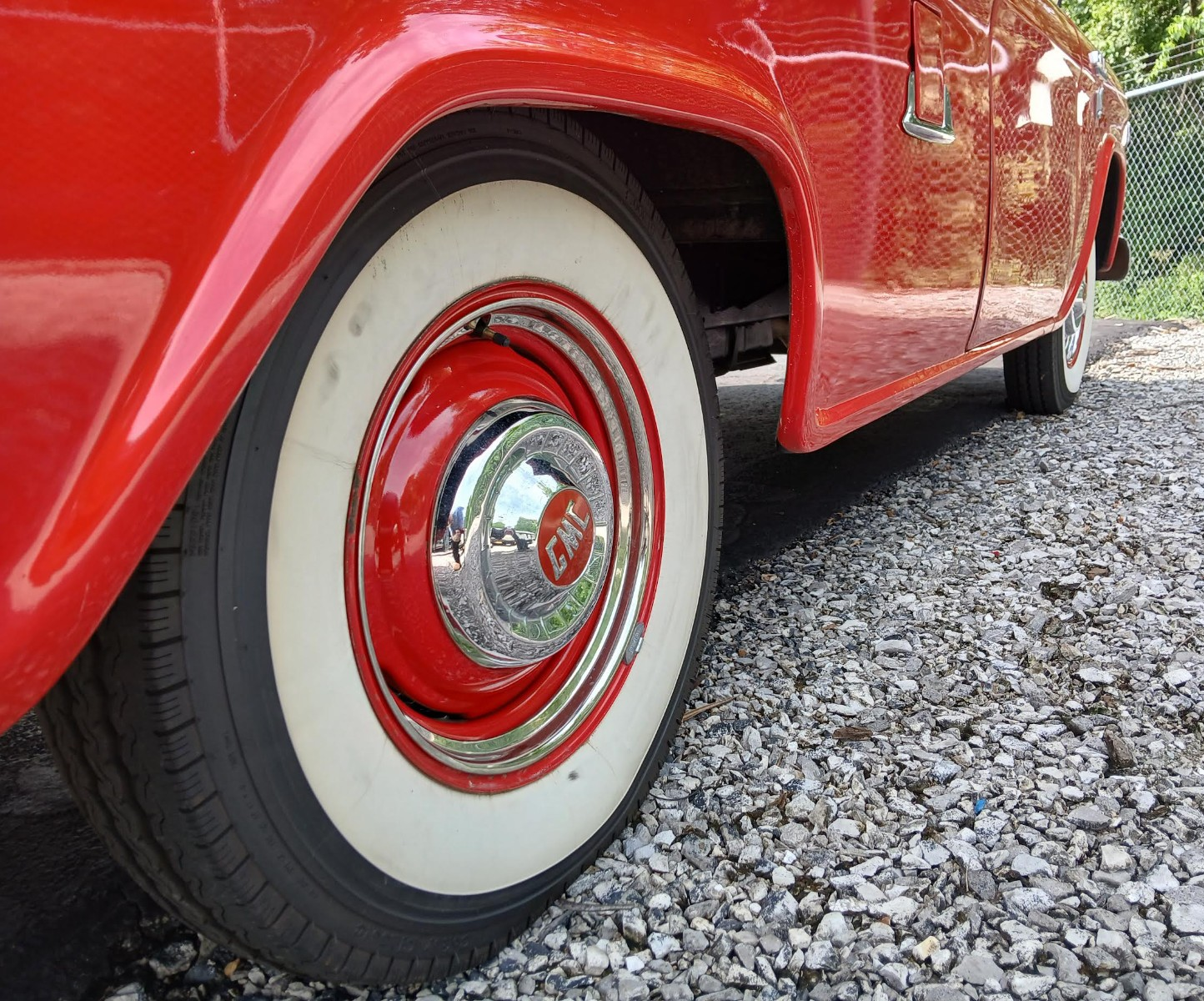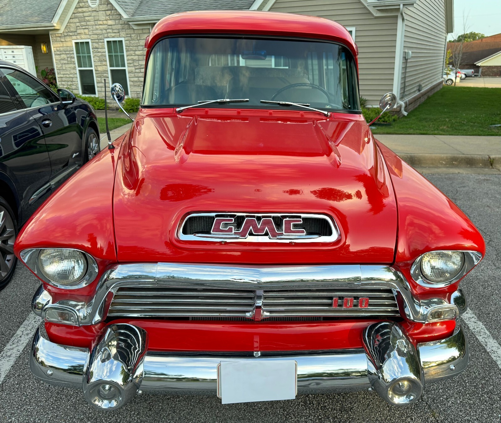 All pictures taken July 16-17, 2025I have a clear open title in my name.Please don't waste our time with low ball offers, no shows, etc. I want to sell, but not a must sell.Too many toys, want to make room. Mostly original restoredRebuilt Pontiac 347, Hydramatic Auto DOES IT WORK?Wipers: YESHorn: YESSpeedo: YESFuel gauge: YESTemp gauge: YES (accurate ?)Oil pressure gauge: YESTurn signals: YESDash lights: YESHeadlights: YESBrake lights: YESTail lights: YESEmergency brake: YESDome light: YESRadio: NOKey does lock doors and tailgate Generator converted to one wire alternator. Re-plated hood jet not mounted, but included only for buy it now, or if reserve is met. Also note the fuel door guard is pictured on truck. However it is not mounted, but is included. I will let buyer decide if they wish to add to the truck. One of the pics shows the original oil bath air cleaner laying on the front floor board, included. I also have a few other small used random parts, nothing major. The custom GMC dash gauge set came with truck. I know very little about them. Was told buy previous owner they include GPS speedo. Receipt in box shows purchased in 2021. Knowledge of truck history is limited.A couple paint chips looks like original color was turquoise?Was told after restored, spent time in Ohio museum.Previous owner, bought 2021 +/-Added electric fuel pump, (but stock one still bolted to engine).Early 2024, They replaced complete front and rear brakes; all shoes, drums, master cylinder, wheel cylinders, and soft hoses.Also 4 new wide white tires, very few miles since, tires still look nearly new. Has an older spare. I purchased truck June 2024, repaired sticking carb float, replaced points with Pertronix, had timing corrected, and compression checked, all eight tested very good. Smooth idle, drives easy, steering tight, stops good. Added aluminum radiator with an on demand electric fan. Rear end not original, Dana 44, Ring dated Feb 1957, 3:07 Ratio. Just finished July 2025, new rear axle bearings and third member bearings. All gears looked good, no damage or need of replacement. I did replace one rear axle with a new one. (I have receipts) Truck located Fayetteville Arkansas 72701I'm available to show/ load 7 days week anytime until Aug 3rd. After that, anytime weekends, and after 5 pm weekdays.
