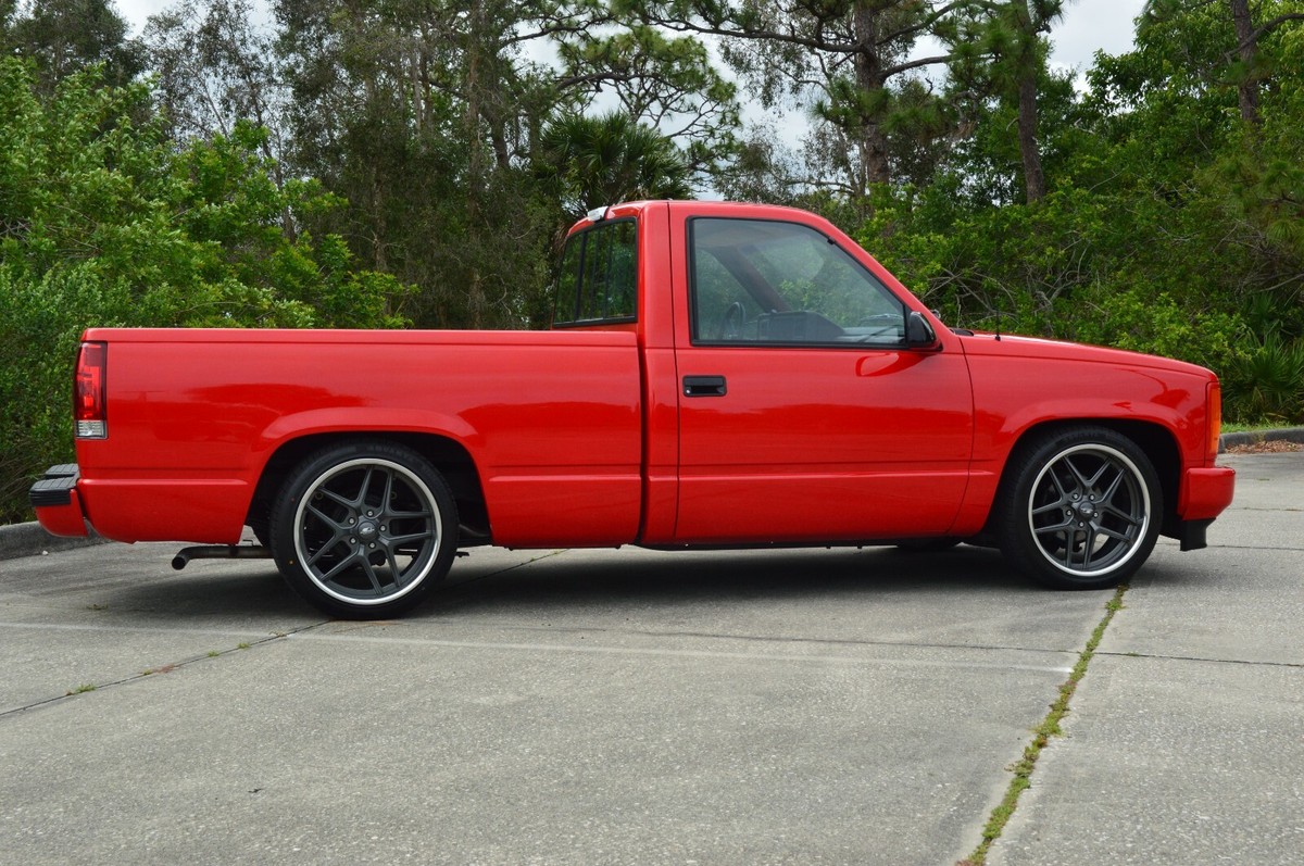 This ad is for a very clean and great looking 1989 GMC C1500 truck that has been upgraded and customized. The truck features a rust free body and only has 46500 original miles snice new and has been maintained and cared for. The truck has had a lowering kit installed and rides great like a factory truck. Belltech 3" front springs and 2" drop spindles were used up front and a rear axle flip and c notch were installed in the rear with nitro drop shocks all the way around. The truck has ice cold ac and everything works as it should. The interior in the truck is factory original and in great shape, the dash is not cracked anywhere and everything else is in great shape. The truck was recently painted but done correctly and completely taken apart and done properly, all lights and lenses are new and the truck was upgraded to the sport style mirrors and painted to match grill and bumpers, New 20" Billet Specialty staggard wheels give the truck a perfect stance. This truck is ready to drive anywhere and can be daily driven.