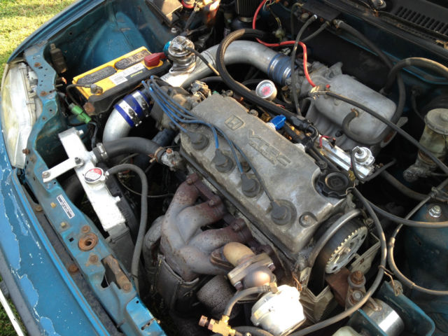 Up for sale is a crx that I built around 4.5 years ago. I bought the car bone stock (minus the steering wheel and front seats) from the original owner and did a majority work myself minus the tig welding and dyno tuning. I built the car with the intentions of it being a super reliable, uick, leeper. This car has never left me on the side of the road stranded. Everything about the turbo setup is hidden down to the untouched from bumper and tinted boost gauge. The turbocharger is a T3 45 trim Garrett turbo. The car makes 236whp on a dynojetdyno and runs 12.70s as it sits in street trim, t has potential for quicker times with slicks but I didn't build it to be a race car. It also gets 34-36mpg. There is a 2.5 inch custom exhaust on the car now with a straight through muffler. I also have a straight pipe'd bolt on rear exhaust section that comes along with the car. The color is "Celestial Blue" which was one of the more rare colors. The quarters are starting to get the normal honda rust. East side has a quarter sized spot behind the wheel. The interior is mostly stock minus the del sol seats and steering wheel which were installed by the original owner. Nobody has smoked in this car and I don't believe that the original owner smoked either. All of the sound system has been replaced with 6.5 inch aftermarket speakers along with an Alpine CD player with iPod andauxiliary hook up. Some other extras from a parts car that I previously had that will be brake calipers, rake booster/master cylinder, xtra rotors, nd a new rear drum brake rebuild kit. Here are some other highlights of the car. - 258,xxx on chassis, 50k on motor - D16Z6 motor (stock) - Hybrid ZC trans with B series axles - 6 puck sprung clutch - Ktuned traction bars - Custom turbo setup with garrett t3 turbo, ial wastegate, reddy bov, ustom tig welded aluminum intercooler piping, bc - Self draining custom catch can setup - dsm 450cc injectors - AEM fuel rail/adjustable regulator - custom exhaust with 2 interchangeable tailpipes - Boomslang obd0-obd1 conversion harness - S300 Hondata with 3bar map sensor - AEM wideband - Boost gauge - Walbro 255 fuel pump - Skunk2 coil overs - New tokico struts - Skunk2 camber kit - New wheel bearings - New ball joints - New tie rods - New timing belt/tensioner - Motegi rims with Kuhmo tires The buyer of this auction is responsible for the pickup orshipping of this vehicle. A $500 non-refundable paypal deposit is required within 24 hours of the auction ending. Full cash or money order payment is due within 7 days. I highly recommend and encourage that buyers/bidders to come take a look at the car locally if they can. I have nothing to hide with this car, lease ask any questions you have before bidding. I will need a $500 cash deposit before any local test drives. As with any used private auto sale, his is an as is sale with no warranty expressed or implied. |