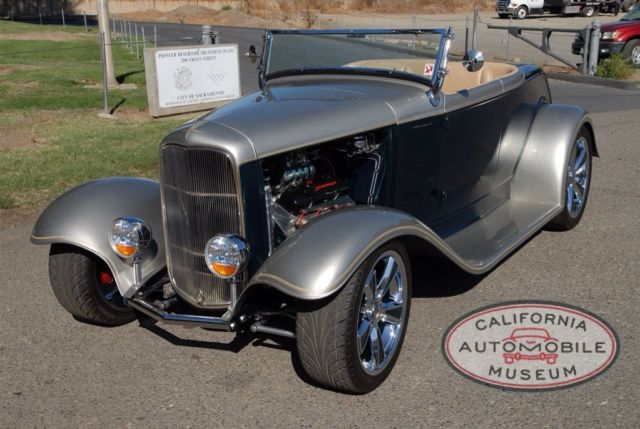 Offered for Sale by the California Automobile Museum 1932 Ford Roadster Street Rod Blown Chevy V8 Automatic, S We Offer Financing Please inquire before bidding ExteriorTwo tone forest green metallic and pearl champagne beige paint is in excellent condition, nly two defects found on the entire body. Body is a fiberglass Gibbons with a Gibbons custom frame. Wheels are chrome and powder coated to match forest green body color.InteriorInterior and trunk are custom finished in leather and with the exception of one minor mark on the drivers door is also in excellent condition. Original-style banjo steering wheel with I-did-it tilt column and Dolphin gauges rounds out the interior. Trunk is just as clean and shows off the custom stereo amplifiers. A small crack in the trunk fiberglass can be found at the hinge.MechanicalThis roadster features independent front suspension with four-link Ford 9” rear end. Brakes are vented discs all around. Engine is a small block Chevy crate motor with a B&M supercharger, mild cam was installed and sounds excellent through the Edelbrock headers and exhaust plumbed through a custom stainless steel system. Heads are aluminum Edelbrock. Transmission is a turbo 350 with transmission cooler.This is a very well sorted out roadster in excellent condition.Starting the car draws a crowd and has the performance to back up the looks. |