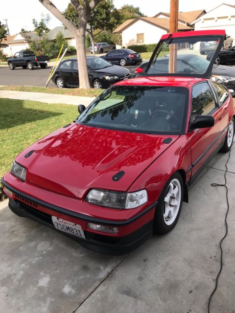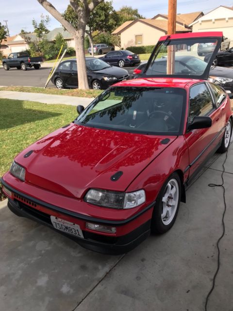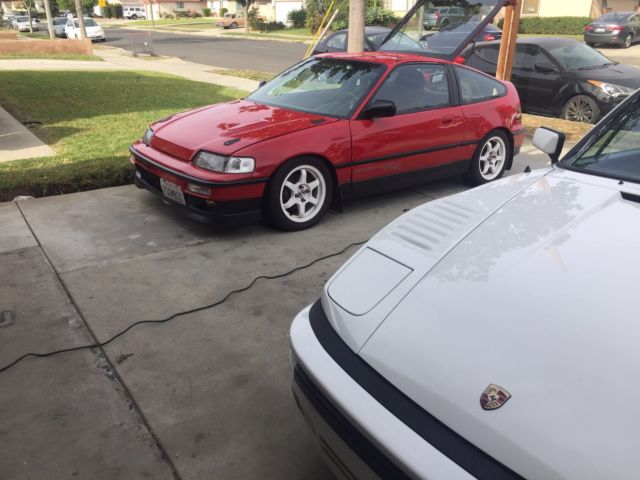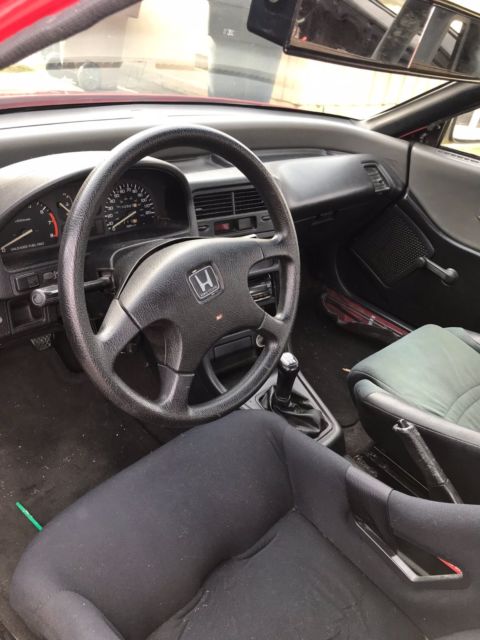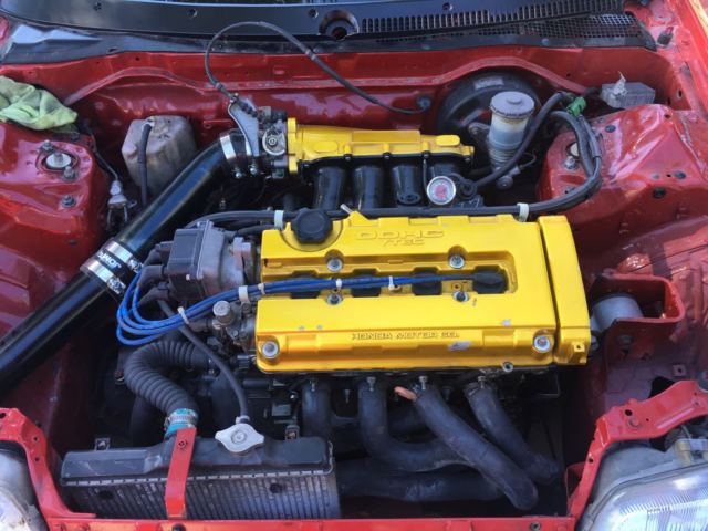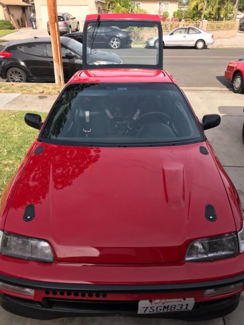 Freshly painted Red, with new rubber & molding, new sparco bucket seats four point harness GSR 1.8 V-Tech all stock. aftermarket intake manifold skunk2 ultra steer70 mm throttlebody thermal gaskets for the intake manifold converted to OBD1 p28 ecuGsr transmissionStage III clutch with lion flywheel aftermarket motor mounts Innovative's front sway barInnovative traction bar innovative shift linkage Da Front spindles Waldron 255 fuel pump450 cc injectorsAem fuel railSuspension function form type onesRear skunk2 camber kitRear lca Rota grids 157Falken matching tires all around This CRX is extremely fast, it's not your average CRX. It's a sleeper. Can help with transportation winning bidder has 24hrs fordeposit and 72hr to pay balance unless discussed otherwise before hand. We have the right to end auction at anytime. |