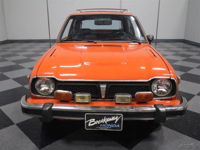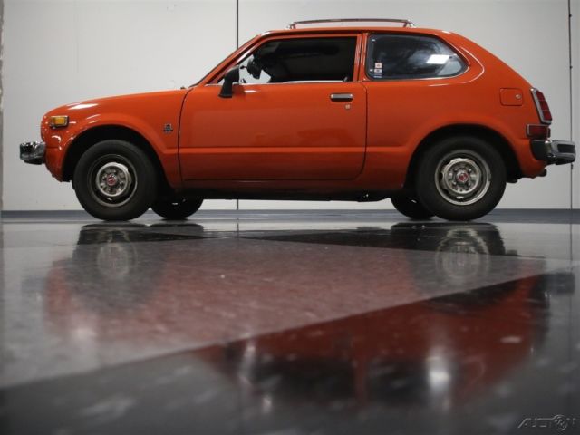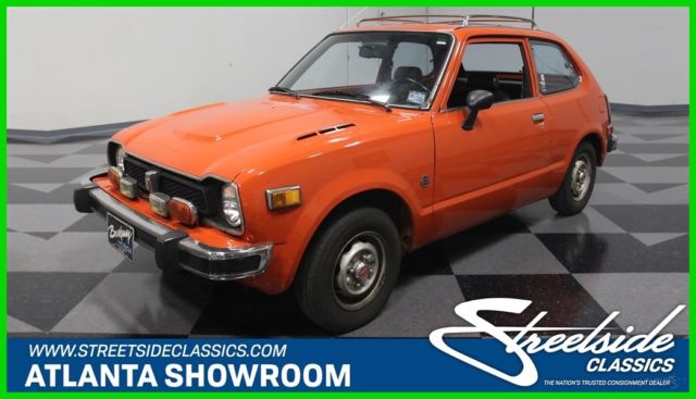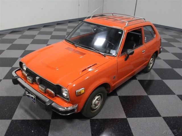 If you've been paying attention to the collector car market, then you know that Japanese cars are gaining ground as hot collectables. We can't promise that this 1976 Honda Civic CVCC will become a hot property overnight, but history shows us that ground-breaking cars from major manufacturers that transform markets are often worthy of their place in history and in collectors' garages. Perhaps the Civic is such a car. If you're going to own one of these, this bright orange hatchback is an excellent choice. Perhaps you remember these zipping around city streets in the early '70s, or maybe you had one. It was the first truly mainstream Japanese car to appeal to the American public's fickle tastes, and that was likely due to Honda's wonderful combination of quality, fun-to-drive-quotient, and economy. Most of them were orange or red, so they were high-visibility, which I suspect was intentional, and despite the fact that everyone was deriding these as inferior to Detroit iron, one drive will convince you otherwise. Just the fact that the gaps are still tight, the paint is shiny, and all the unusual little bits and pieces are still intact speaks highly of the quality and care this car has received over the past 40 years. Nice chrome bumpers, a jaunty roof rack, and those familiar taillights out back make this a car that's going to trigger memories for everyone who sees it. The interior is remarkably tidy and surprisingly spacious for such a small car. The bucket seats reflect Honda's driver-first mentality, and they're still comfortable wearing stock-style seat covers that are probably way too nice to be original, but just might be. Controls are simple and effective, with a big, fat steering wheel to manage the unassisted steering. Gauges are big, round dials that are easy to read and if you've ever driven a Honda, you'll quickly recognize the font, so they looked like this for decades. A modern AM/FM/CD stereo seems to be the lone upgrade, and it's a good idea, especially since the installation lets it blend into the dash so easily. A 4-speed manual shifts well, the pedals are situated just right, and the back seat, while not exactly spacious, is reasonable for a small car. There's a bit of trunk behind the back seat, but fortunately, the seat folds down and expands it to a significant degree for hauling just about anything. Honda's 1488cc inline-4 isn't going to win any drag races, but it feels energetic and durable going about its business. This was, after all, an economy car, but there's no rule that says economy cars need to also be boring. The CVCC refers to Honda's Compound Vortex Controlled Combustion, which allowed Honda to meet US emissions standards without a catalytic converter. It still uses a carburetor, but the design works well and makes the car feel perky around town. The engine bay is highly original and could use a deep cleaning, but it appears to be entirely complete from top to bottom and has not been modified. Note how the engine is canted forward a bit to facility packaging and the radiator is tucked over there on the passenger's side. It's as reliable as you'd expect from a Honda, and as I mentioned, showing up with an early Japanese hatch like this will get you all kinds of attention. The 4-speed has light clutch action and the all-independent suspension is surprisingly agile, so you can drive this car with gusto. Tires are modestly-sized 155/80/12s, but with so little car to move around, they don't need to be big and that means they're affordable, too. A neat, well-preserved piece of Japanese motoring history, I think we'll see more of these in the coming years. Get ahead of the curve and call today!