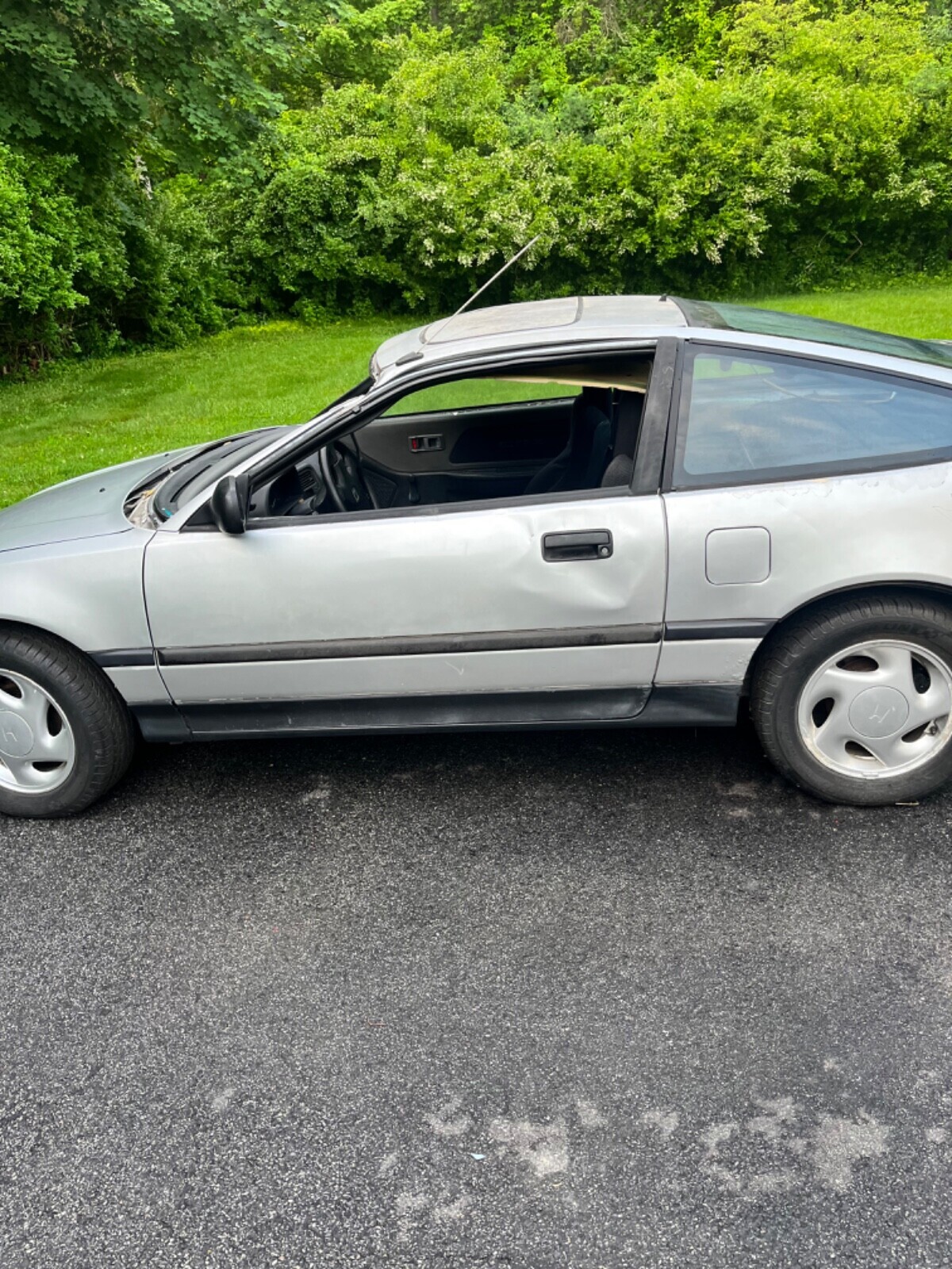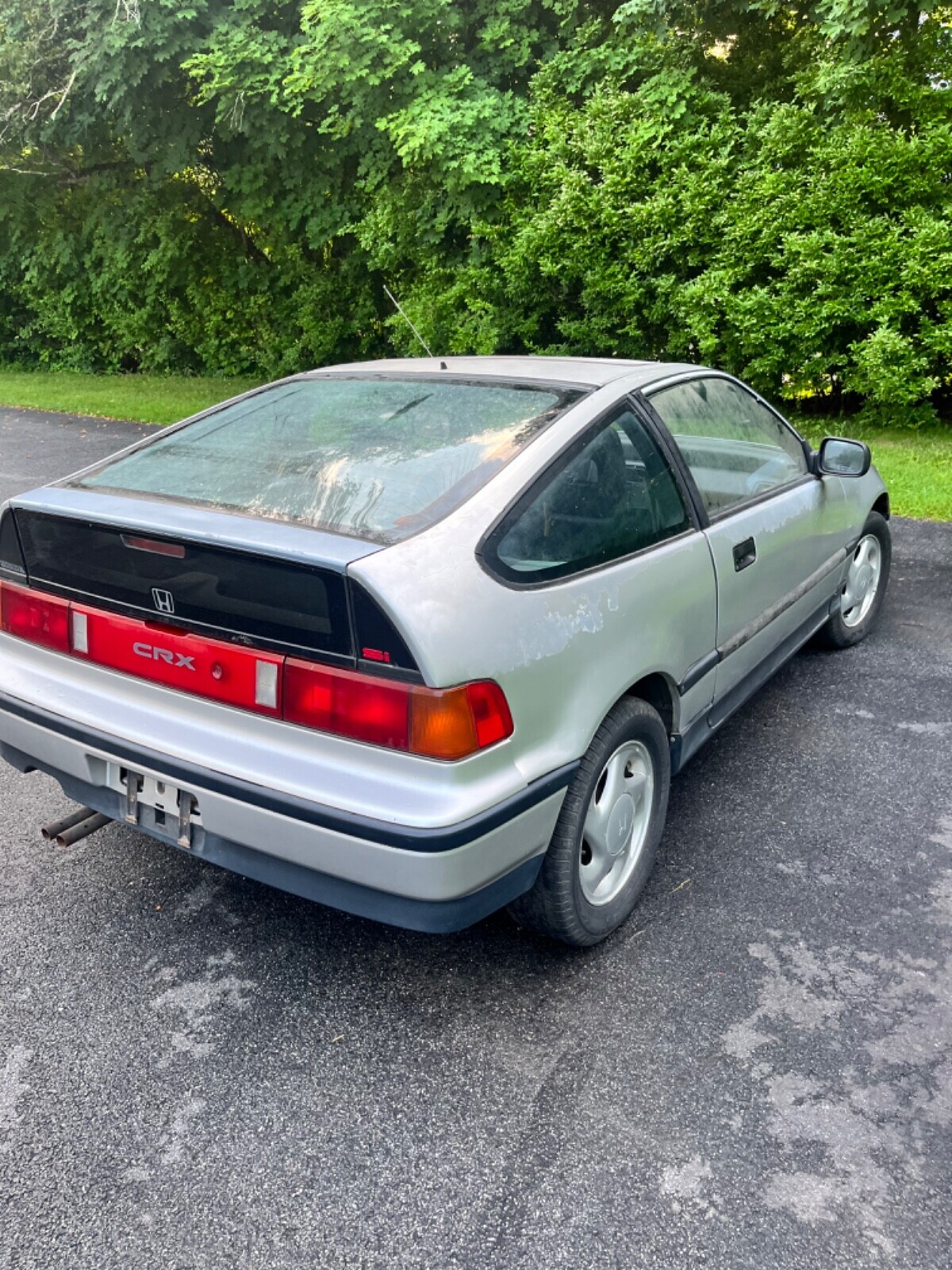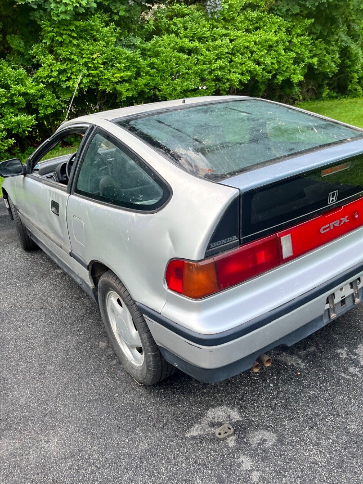 This 1988 Honda CRX Si is a stylish hatchback in Blade Silver exterior with gray interior. It has a 5 Speed manual transmission and a 1.6 engine. This two-seater vehicle is equipped with left-hand drive and comes with a clean vehicle title. A large tree branch fell on the CRX causing some damage. the main / Major parts to repair are included. Perfect project that is being sold AS. IS. I prefer purchaser come inspect it first. There is. NO AC . Not sure if it ever had it. I have never driven the car any further than up and down my street. I purchased this car and located a donor 1988 CRX Si. I removed the windshield and driver’s door which are included in the sale along with a clean sunroof cut off. The whole roof . I removed as far down from A pillars and far back on rear windows . Again. Car is being sold as a AS IS Project.I’m a straight shooter and can’t take a lot of the bulls”””. Be someone who knows what you’re getting into. If you’re a body guy this is a great little project. I’ll answer questions but list them all in one shot . I will respond back with answers.500 due at end of Auction with in two days.