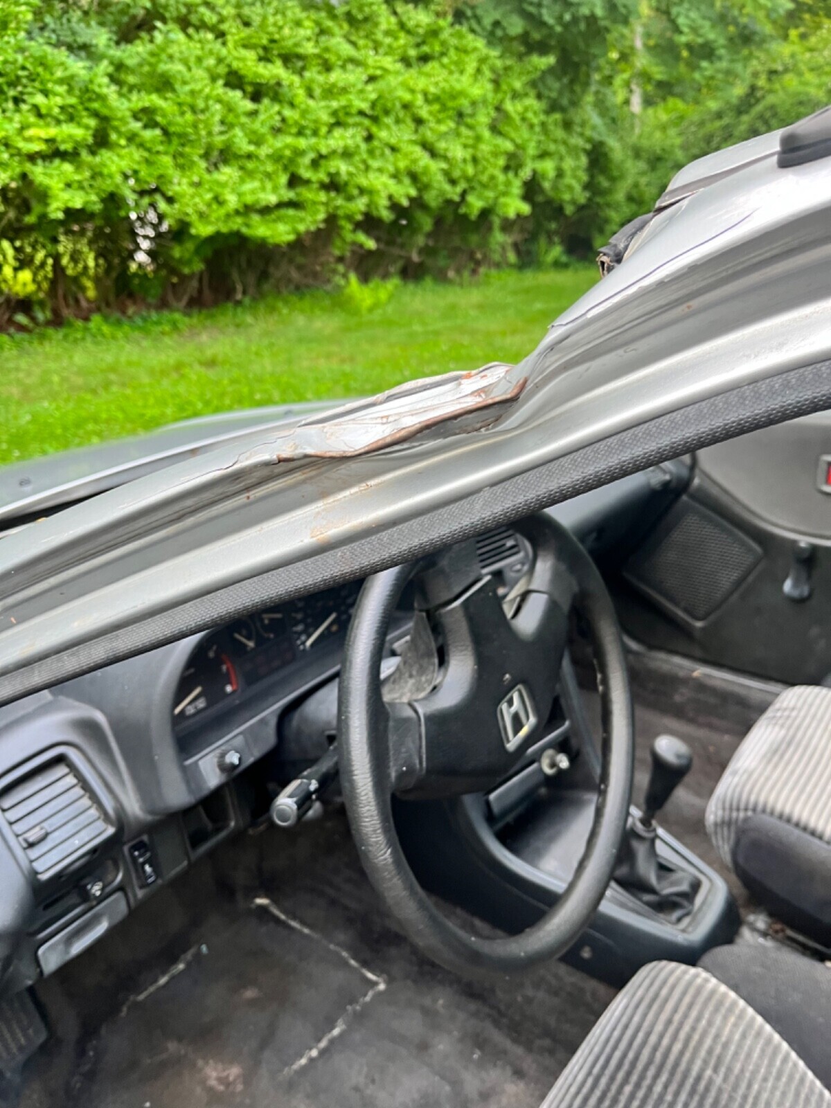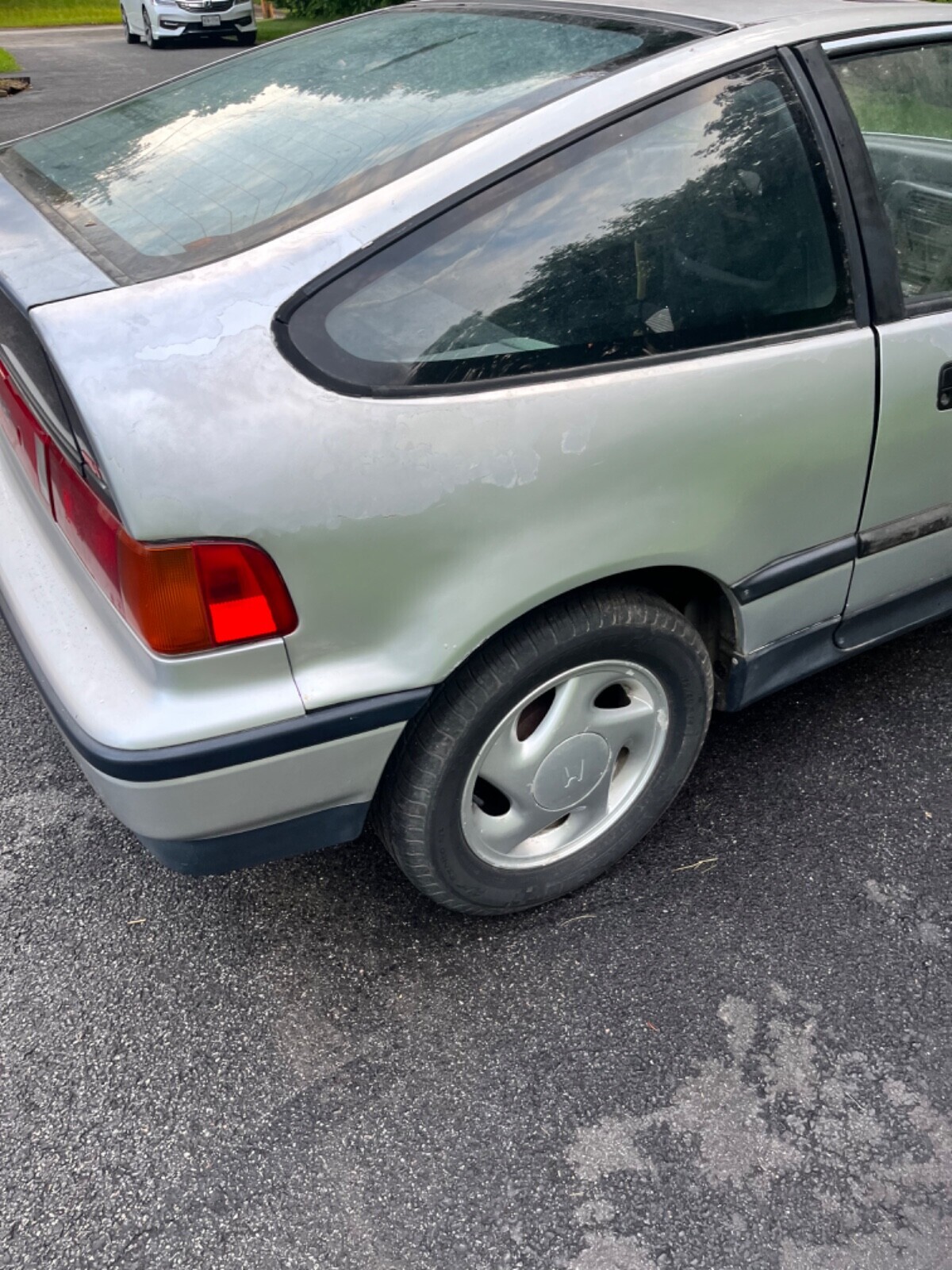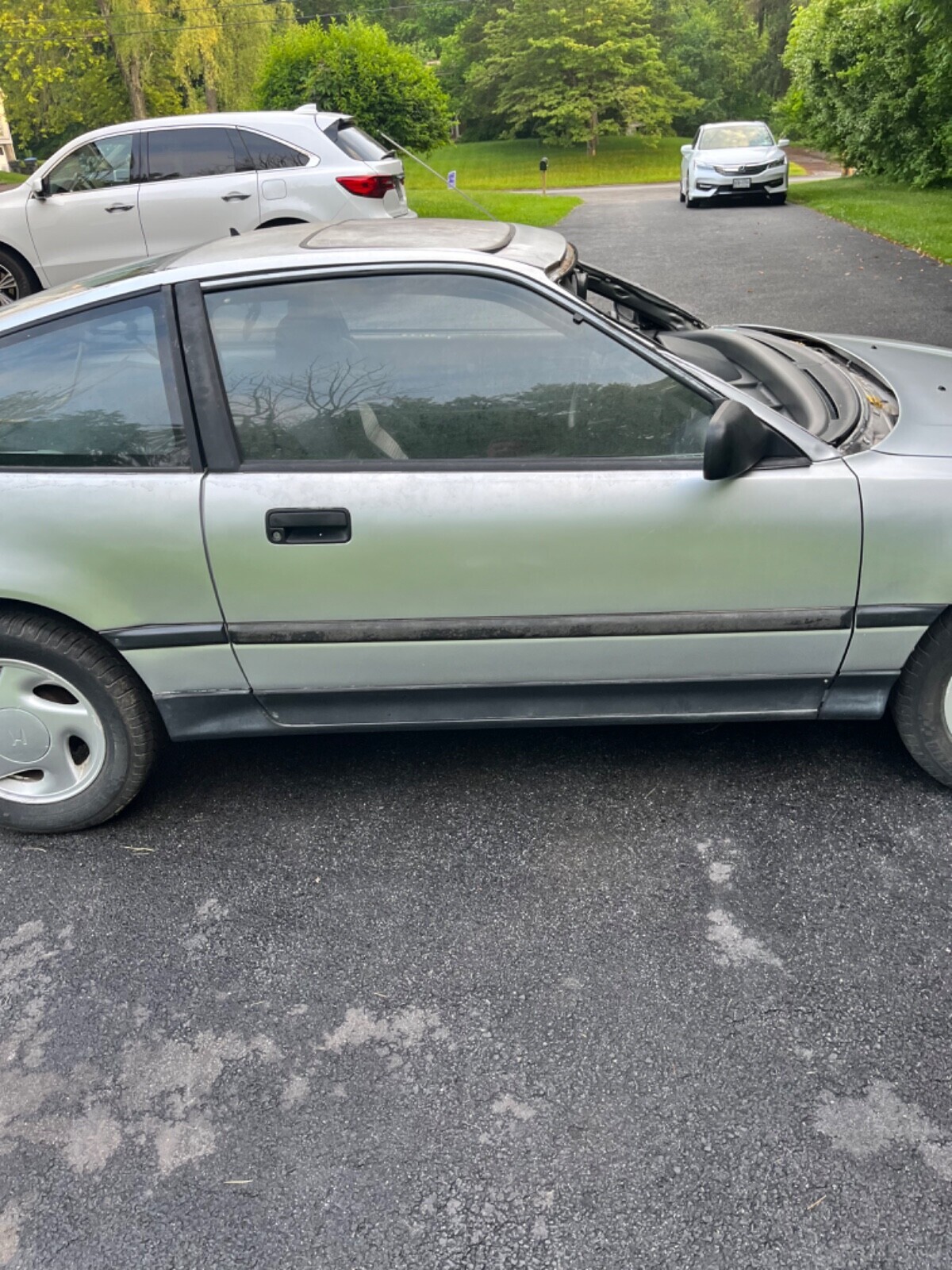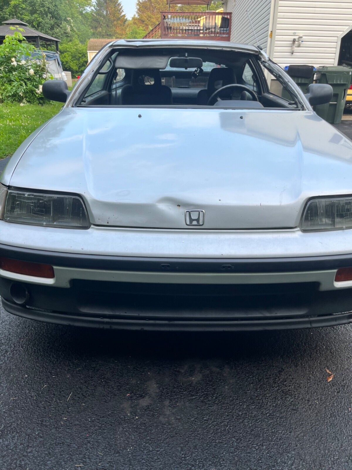 This 1988 Honda CRX Si is a stylish hatchback in Blade Silver exterior with gray interior. It has a 5 Speed manual transmission and a 1.6 engine. This two-seater vehicle is equipped with left-hand drive and comes with a clean vehicle title. A large tree branch fell on the CRX causing some damage. the main / Major parts to repair are included. Perfect project that is being sold AS. IS. I prefer purchaser come inspect it first. There is. NO AC . Not sure if it ever had it. I have never driven the car any further than up and down my street. I purchased this car and located a donor 1988 CRX Si. I removed the windshield and driver’s door which are included in the sale along with a clean sunroof cut off. The whole roof . I removed as far down from A pillars and far back on rear windows . Again. Car is being sold as a AS IS Project.I’m a straight shooter and can’t take a lot of the bulls”””. Be someone who knows what you’re getting into. If you’re a body guy this is a great little project. I’ll answer questions but list them all in one shot . I will respond back with answers.500 due at end of Auction with in two days.