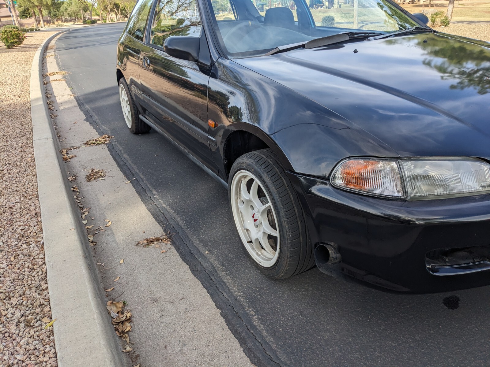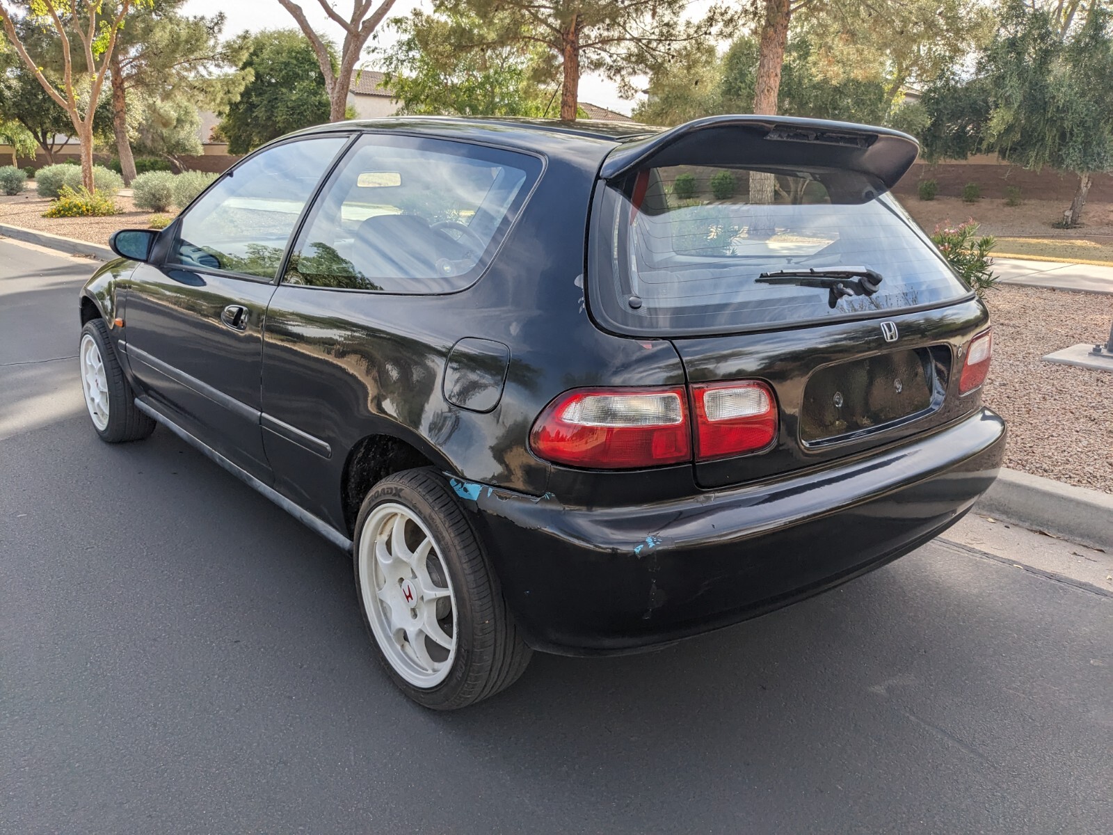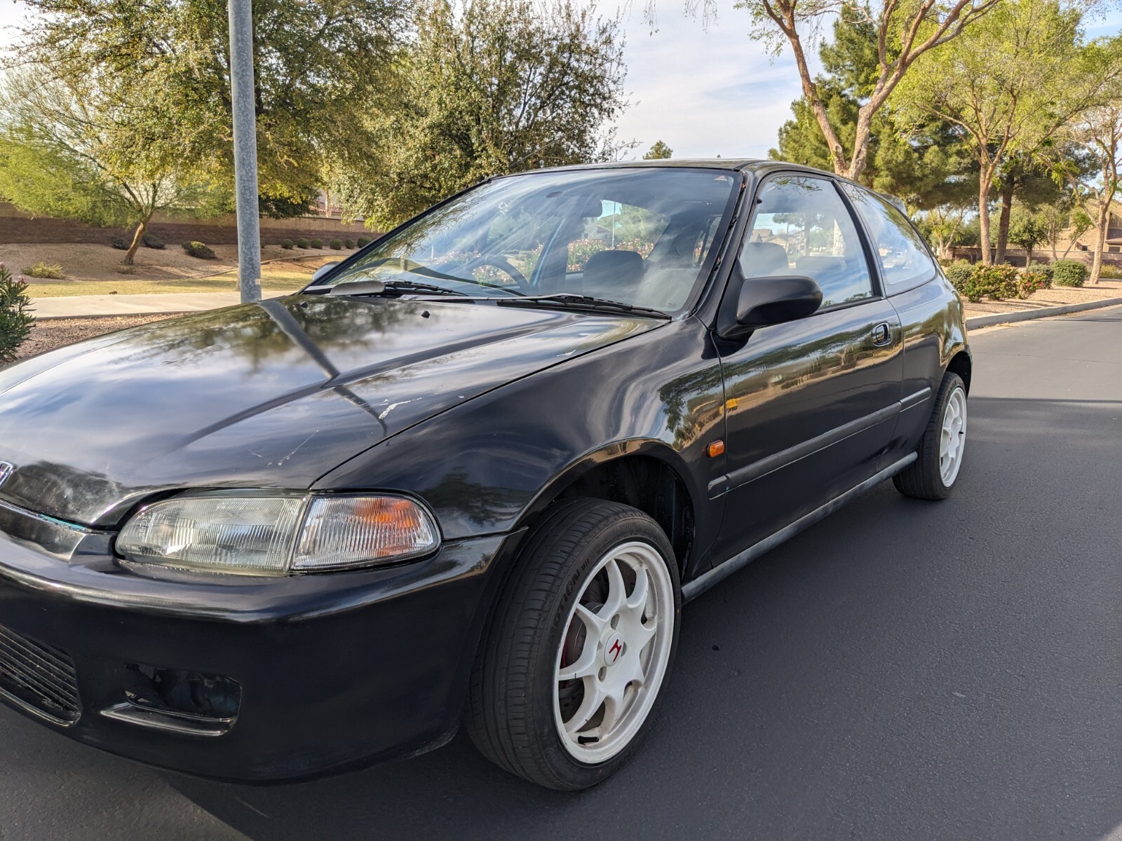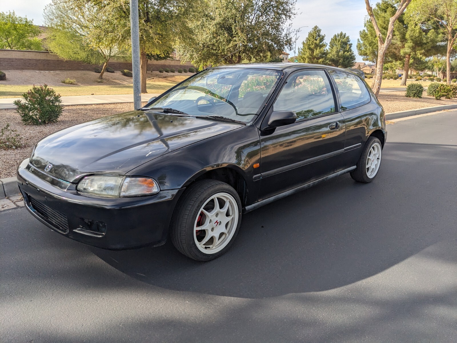 For Sale-1994 Eg4 honda civic hatchback, 100k Original MilesImported from England and comes with clean Arizona titleVehicle vin - JHMEG43500S301222 D15B engine / 5 speed transTurbo and street tuned, Runs strong and pulls hard, Running about 5 psi650 Rc Injectors, 3 Bar map sensorAll stock suspensionInterior is in good shapeTires still have a lot of lifeNo Ac model vehicleNo major dents Cons / Things worth mentioning-Paint Sucks. It was a poorly done black respray, although there are no major dents.Door jambs half ass painted.Rear wheel arches have been repaired at some point and one side is a little wavy on the bottom.Windshield needs replaced - US uses the same glass so it's not expensive.Sunroof Seal is gone. It doesn't leak inside the car because the drains. Can include another glass sunroof with seal if requested.blows a little smoke on deceleration after a pull Vehicle is being sold as is with no warrantyFeel free to reach out with other questions I will make myself available to meet with car shipping company and can help you arrange that if needed.I can also take $1000 off the purchase price if you want the rolling chassis with no engine/ transmission