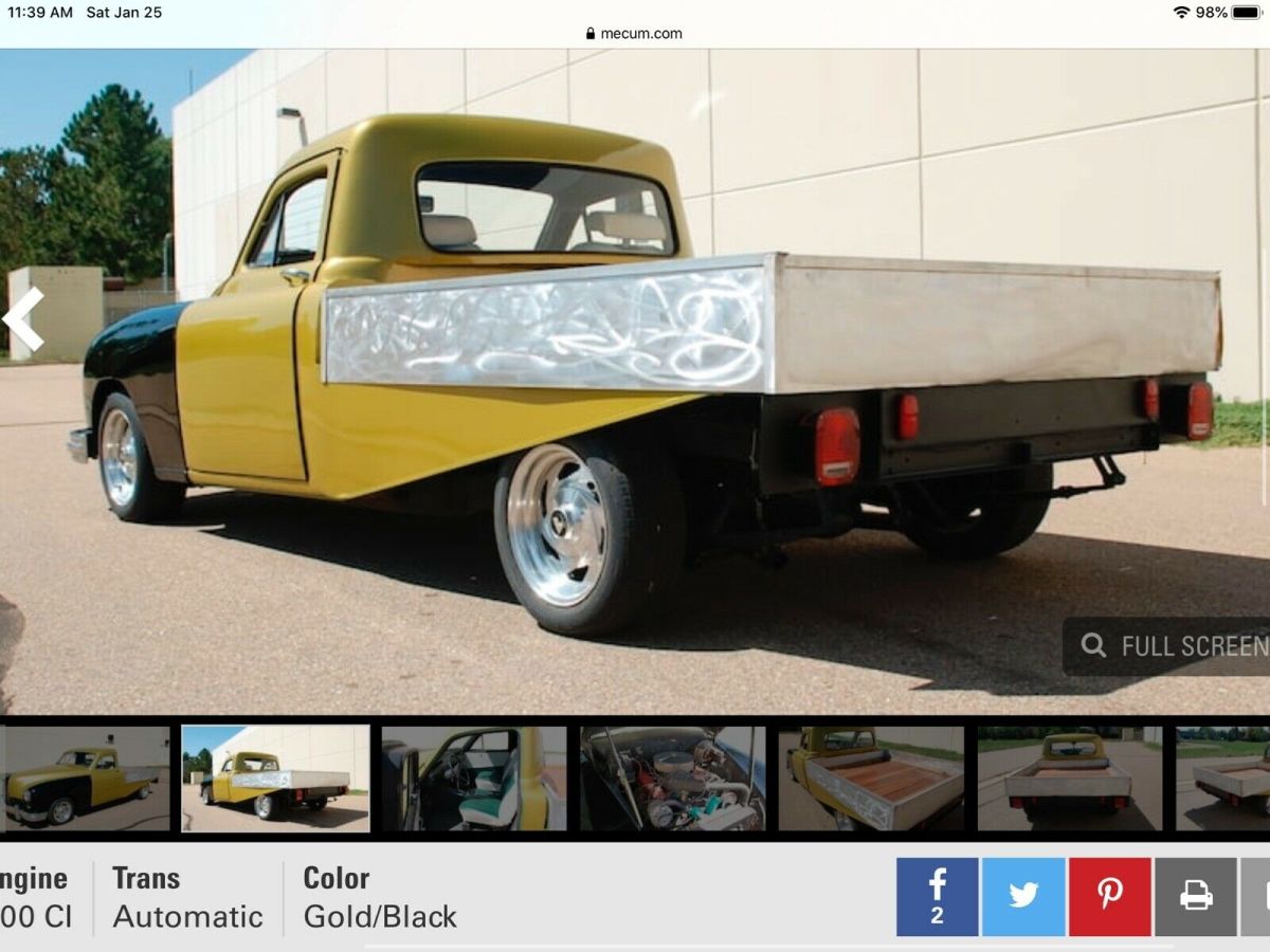 | 500†Cadillac engine. 3 speed automatic with 8†ford rear. Power steering and brakes. Aluminum wheels with buckets seats and wood bed. Cool little truck |