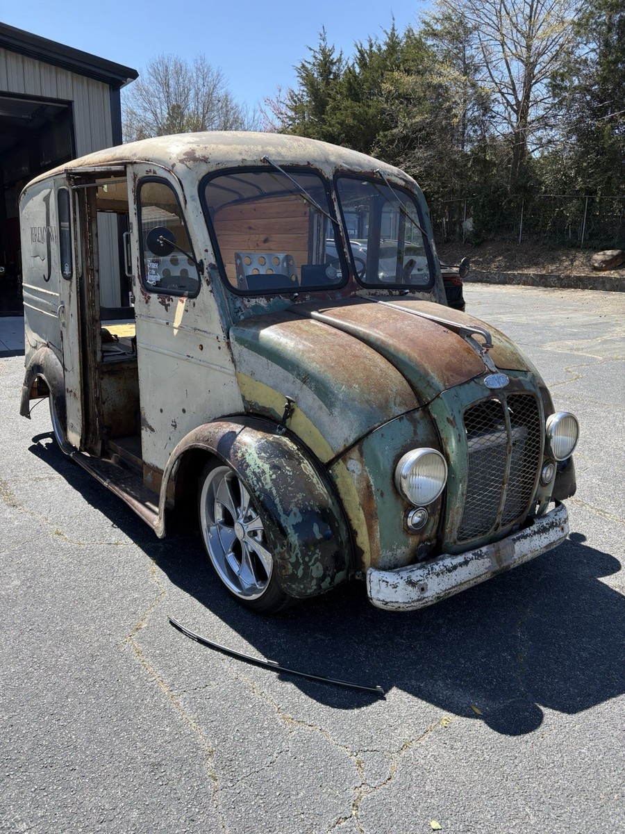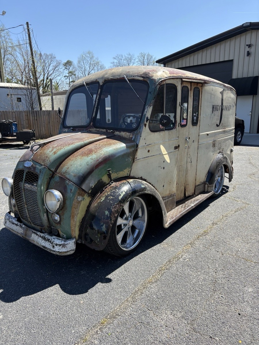 1951 Divco Milk truck on a 2009 Hummer H3 chassis, 8.8 rear end aluminum driveline. 4L60e transmission. 43000 miles. The chassis has been completely step notched in the rear bagged all 4 corners. It lays frame. Traditional paddle controls and two air compressor set up that works great. All new wiring and harness. Every light is LED and new. Location tall shifter. Drive by wire with cruise control. IDIDIT steering column. Curtis aluminum bomber seats all new front glass and seals. Runs and drives great.Vin# 1500971