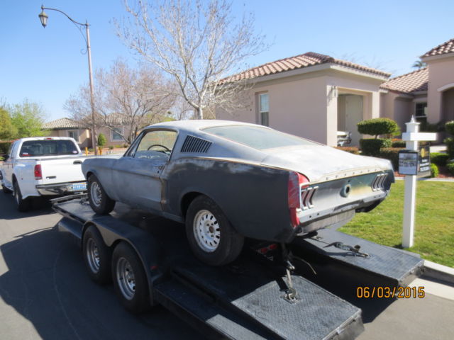 | 1968 Ford Mustang GT Fastback. Very highly optioned car that is 95 % complete with new parts. Factory J code with dash tag. door tag. rear end (3. 25) and transmission tag. 4 speed toploader with correct shifter. Very nice floor pans with drivers rear being replaced at one time. A battery had been sitting upside down in there for many years. Undercoated now as well. All suspension is brand new. All brakes are brand new and in the box. Disc on front. Correct 9 inch rear end with 3. 25 gears. GT style wheels. Car has had a new 1/4 put on the left side. It was explained to me that it had set in a garage for many years and had been beat on by an older gentleman getting in and out of his car (?). Very nice body for a restoration. Originally Gulf stream aqua with aqua décor according to Marti. I have all new Black deluxe interior. carpet. door panels. seat covers. dash pad. Car is equipped with factory tachometer. tilt wheel. both upper and lower consoles. louvered hood. fold down that has not been cut for speakers. There is a 302 engine that is non matching numbers. New valances. bumpers. export brace. weatherstripping. All carlite glass with nice trim. This car will be a very high end car when completed with a minimal amount of work. You can call Dan at 785 250 1789 with questions. Car is located in Las Vegas. |