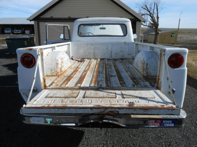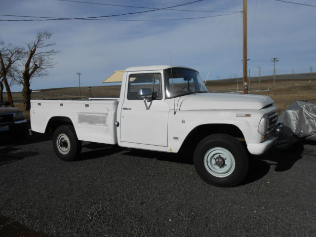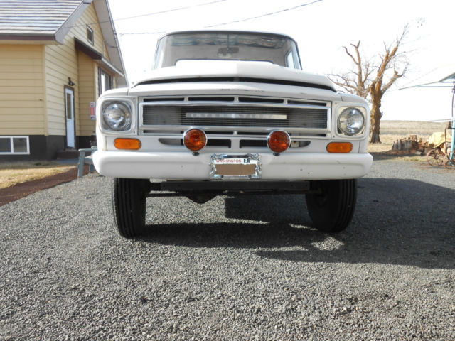 1968 IH 1200C 3/4 ton 4X4.2500 miles on complete engine rebuild. See receipts.New clutch assembly.Granny 4 speed trans.New knuckle bushings, heel bearings andfront end alignment.Noise in thefront axle housing when the hubs are engaged otherwise 4 wheel drive works perfect.It has 5 new tires,new brake booster, aster cylinder and wheel cylinders.Good heater and all gauges, ipers,headlights and taillightswork except the fuel tank gauge.All the glass is good and the windows go up and down.This truck can be driven home anywhere.It does have minor rust and dents in the rear The truck is currently registered in the State of Washington. The truck is located in Wilbur Washington 75 miles west of Spokane.Im selling it for a friend of mine. Buyer will have to pay for andarrange shipping. The truck weights approximatly 4600 lbs. For more info call me, rad 828-712-2827 |