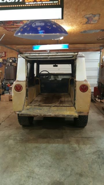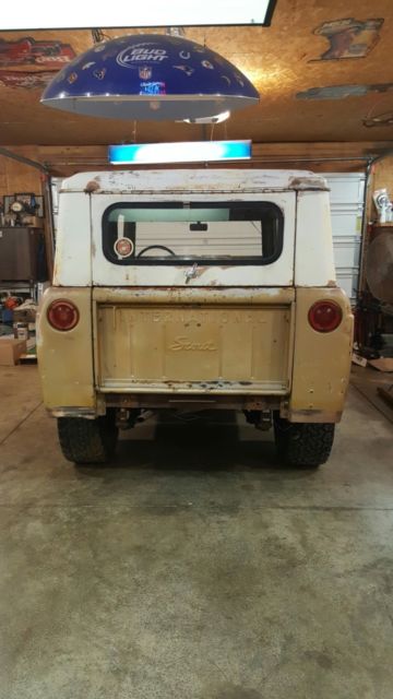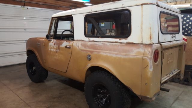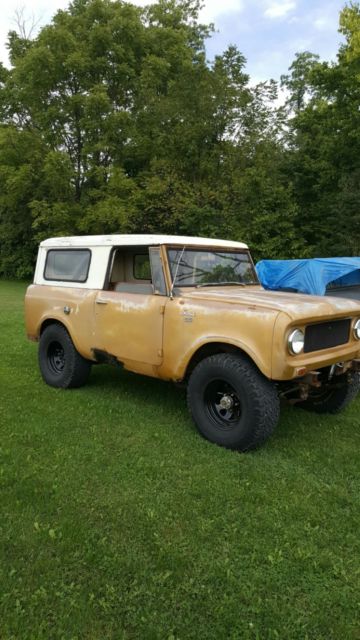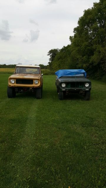 Scout 800 152 4 cylinder, 4 speed, 4x4. Do not know the actual mileage. Runs and drives and stops. All new brakes and components. Two brand new Poly urethane fuel tanks, sending units, filler necks and vent tubes installed. New battery. Good 33x12.50x15 BFG's. Solid floors, minimal rust (see pics) needs under dash wiring but headlights, taillights and marker lights work. Could use carburetor rebuild and steering box rebuilt. Would make a solid build. I bought this truck and it had a 1963 VIN plate and title. I believe the truck to be a 66 or 67, but I had no trouble with the title at the BMV. Clear title in my name. This is also for sale locally, so I reserve the right to cancel this at any time. Buyer responsible for shipping or pick up. Also have a 1963 scout 80, body is rough but a lot of good parts,complete drive train, comes with correct VIN tag and title. can make a packaged deal, would sell both for $4500.