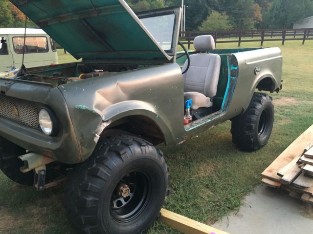 ** I'll post more pictures on Tuesday ** 1963 Scout 80 4x4. All of the major modifications were done before I bought the truck. I added the wheels (brand new 15x10s) and 35x15.50x15 Super Swampers (good shape) along with a new fuel pump, clutch master cylinder, plugs, and had the carb rebuilt. The previous owner swapped in a Dana 44 rear axle (front too maybe? Have to check) and welded up the rear end I believe because both tires turn at the same time. Runs great, lights work. The clutch needs to be bled again and clearly it's no beauty queen but it's a cool truck. If you're interested, send me a message with your number and I'll give you a call to discuss and explain anything you want to know. I'm trying to sell this quickly as I've bought another project. I also have this listed locally, so I reserve the right to end the auction at any time. Immediate deposit of $500 due via PayPal. Full payment due within 3 days. Note that in Alabama titles are not issued for vehicles of this age so this truck is sold with solely a bill of sale. |