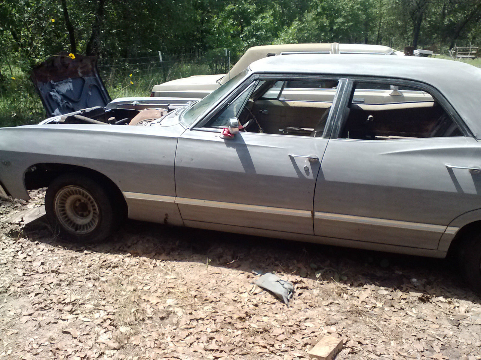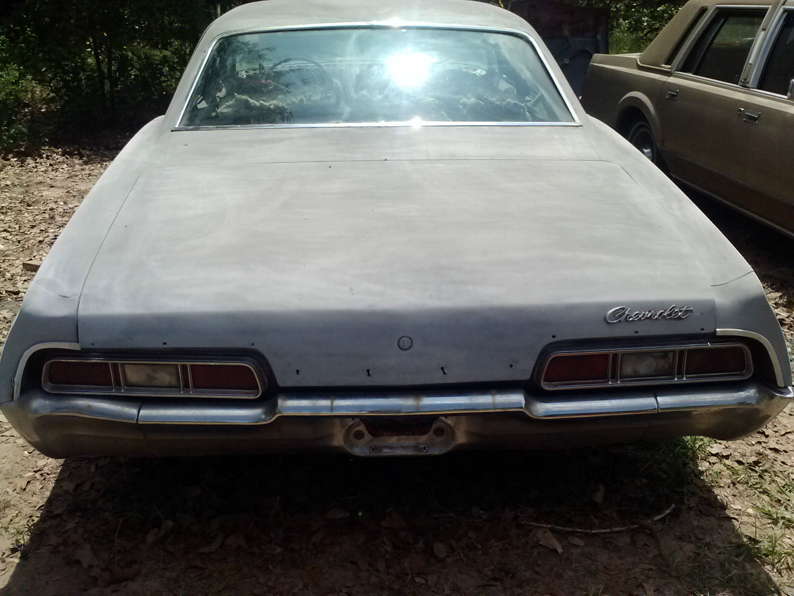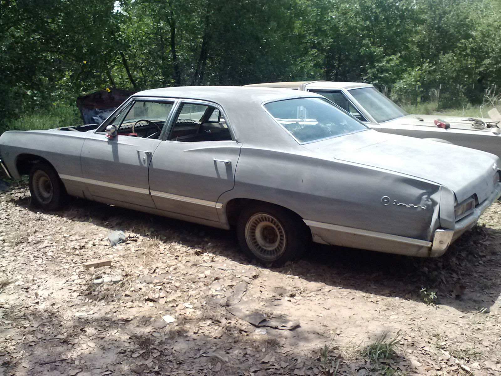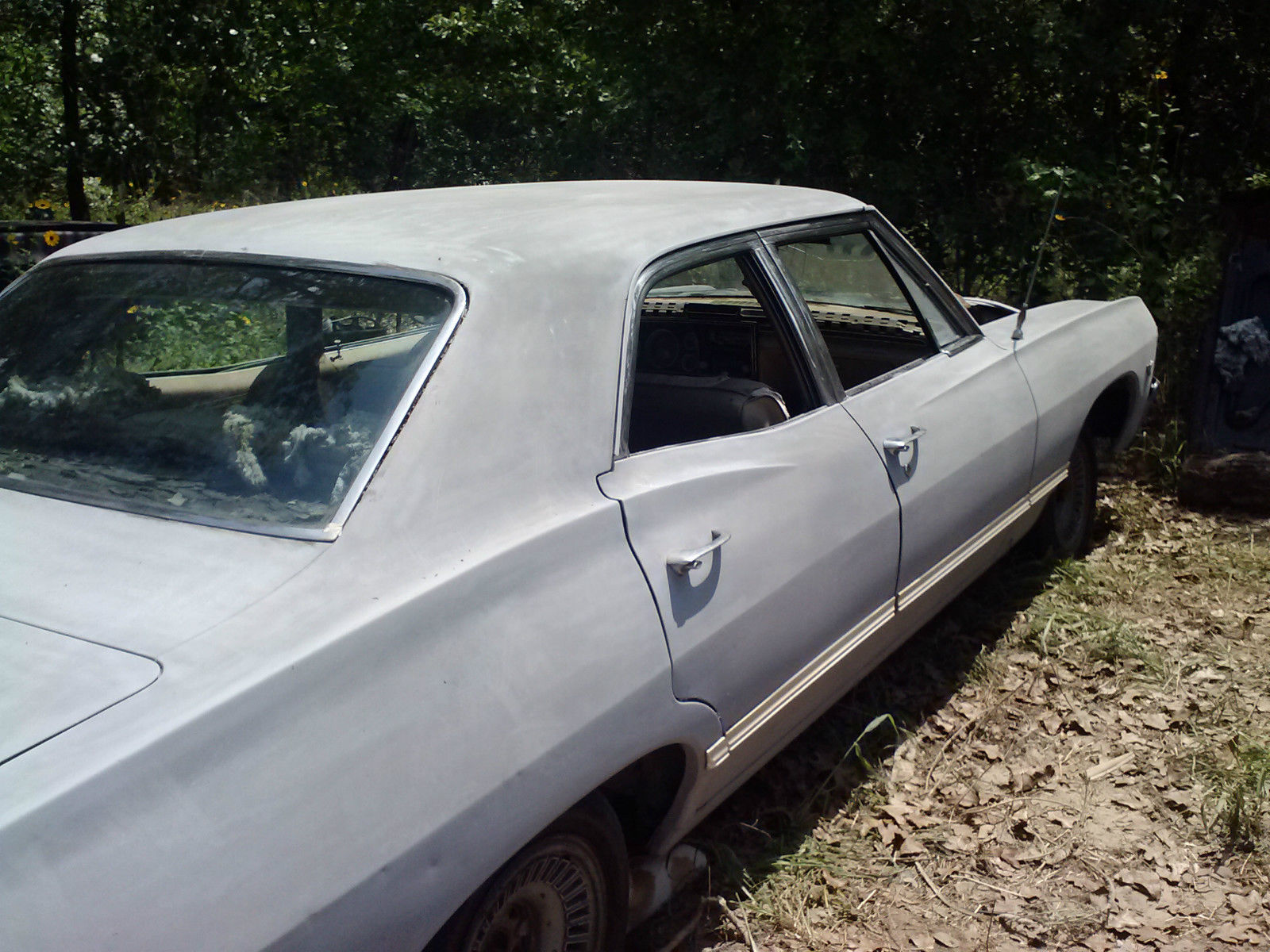 | For sale 1967 Impala Sedan $1200 minimum I will consider is $600original Engine 283 v8 and transmission (does not run) missing intake and carball glass but front passenger side. windshield crackedbuilt in Arlington. Original color was Granada Gold. Interior is almost all there but needs to be redone and mice and rats have had a field day in there. Has most of the trim and is fairly straight with the exception of a dent in the drivers side rear fender. Have keys for doors and ignition. Missing hood. also missing rear trunk trim. Have extra drums and brake hardware and shoes. Drivers side rear wheel is locked up (probably emergency brake issue) Have expired titleWill not ship. You will have to arrange to pick up. |