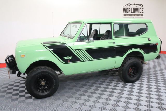 CALL OUR SALES TEAM! 1-877-422-2940 Worldwide Vintage Autos is one of the largest classic automobile consignment dealerships in the world. With over 200 vehicles in stock spanning over 60,000 square feet, we have what you are looking for! We provide top tier service for both online buyers and in-person transactions. Stemming from the sales over 1,000 cars a year, we have become experts in domestic and international shipping and can help you find a shipping company to safely transport your new purchase to your garage. To viewcurrent and upcoming inventory please go to our website Worldwide Vintage Autos [. c o m ].If you do not see the vehicle you want in our inventory, make sure to sign up for‘VIP UPCOMING INVENTORY’, found on theleftsideof our homepage. Worldwide Vintage Autos is pleased to present this 1979 International Scout Rallye! Over the top frame off restoration. One of the coolest Scouts we have seen! Commands attention EVERYWHERE! HISTORY The Terra and Traveler were produced from 1976 to 1980. Terras had steel tops and Travelers had fiberglass tops; half top for the Terra or full top with hatchback type liftgate on the Traveler. Most notably different, these models were extended by 18" in the region between the door and the front of the rear wheel-well. SOURCE: WIKIPEDIA SPECIFICS / BUILD INFORMATION EXTERIOR -Frame off restoration - IH 1979 authentic color "Mint Green" with authentic Rallye stripes painted under clear coat. -Rigid Industries fog lamps & back up lamps. -Halogen headlamp kit. -New windshield. -XEON winch. -Anything Scout front & rear bumper w/spare tire mount. -BF Goodrich All Terrain A/T tires with plenty of tread. INTERIOR -New carpet and Soundmat throughout floor, doors and TravelTop. -Tub treated with POR15. -Complete rebuild of doors/windows. -Rebuild of original gauges, relumed needles. -Aftermarket tachometer. -7 toggle switches for: fog lamps, rear lamps, and power distribution box prewired for future lights/etc. -Compass/temp gauge rear view mirror. -Seat heaters front and rear. -Power boxes installed in back, left and right. -Collapsible cup holders left and right in the back. -Tuffy box with cup holder for front. -Aftermarket head unit & speakers. MECHANICAL -Professionally rebuilt 345 IH motor (Geddes Racing in Colorado Springs approx. 10K miles on rebuild) with fuel injection upgrade. -Rebuilt transmission. -Rebuilt transfer case with Advaced Adapter &Twin Stick kit. -Complete rewire with KwikWire harness. -Davis United Ignition HEI distributor with Live Wire performance spark plug wires & harness. -Hamilton Fuel Injection kit with Vehicle Speed Sensor & OBD port. -High Torque starter. -New Bilstein shocks, polymer bushings & Rough Country springs - 4 Inch lift. -Crawler Proven Technology Reverse Shackle & Steer Straight bar. -Complete rebuild of steering column, all new components. -Reconditioned gas tank with POR 15 gas tank kit. -All new fuel lines front to back, new water pump, new oil pump. -Front axle cut and turn by 4x4 Predator Colorado Springs. -New ball joints. -New Crawler Proven Technology tie rods & Zbar. DISCLOSURE -There are a few chips / imperfections in the paintand dashboard and seat show sign of age. (See detailed pictures) -Ammeter gauge is not operational. For more details on any disclosure items please contact a sales agent today at 1-877-422-2940. Own this vintage Scout at wholesale cost.The cost of parts and restoration of these vehicles are increasing daily. They are not making any more and, therefore, they are becoming more rare by the day. Buy one complete and ensure your investment for the future. An excellent investment and something you can enjoy daily. Collectible vintage vehicles have historically appreciated at a rate greater than that stock market, gold and other arts and collectibles as documented by many articles and auction result tracking. NEED MORE DETAILED INFORMATION? CALL US AND WE WILL HELP ANY WAY POSSIBLE! 1-877-422-2940 WORLDWIDE VINTAGE AUTOS [. C O M ] FINANCING: JJ BEST BANC. COLLECTOR CAR FINANCING 800-872-1965 Please mention you are working withWorldwide Vintage Autosin order to expedite the process. DEPOSITS: Deposits to hold vehicles is $500. Upon payment of the $500 deposit, the vehiclewill be held for7 days pending final payment. Deposits are non-refundable due to i). the vehicles are taken off the market and we turn down other buyers during the7 day period and ii). there is significant re-marketing costs associated with relisting / remarketing our vehicles. Inspections shouldbe performed prior to putting a deposit down on a vehicle. INSPECTIONS: We encourage inspections. We disclose known defects and imperfections but we are not you. Purchasing a vehicleis very subjective. Come visit our showroom in Denver,CO, we would love to meet you in person! SHIPPING: We recommend having our shipping coordinator facilitate the transport of your new vehicle. We can handle all shipping arrangements in-house, so you know where your vehicle is from point ‘A’ to point ‘B’. We highly suggest using only enclosed shipping to protect your investment. We useCentral Dispatchand they ensure all carriers are licensed, insured and bonded. INTERNATIONAL BUYERS: We have sold and shipped vehicles all over the world, with happy customers in Canada, Europe, Australia, New Zealand, Japan, South America, and the Middle East, just to name a few. We can assist with the transport to your home port anywhere in the world, as well as help with the required export/import paperwork. We recommend the following import/export contacts: •Halmari, in Houston, TX @ 1-713-644-0444 •Schumacher Global Transport@ 1-800-599-0190 We specialize in: 1. Vintage trucks and 4x4’s! Pinzgauer, Unimog, Defender, Bronco, Land Cruiser FJ40 FJ45 FJ55, International Scout, Jeep Willys, Dodge Power Wagon, Nissan Patrol, Ford Truck 4x4s, Chevy Truck 4x4s, NAPCO, Marmon Herrington, etc. 2. Vintage American Cruisers! Cadillac Biarritz, Chrysle