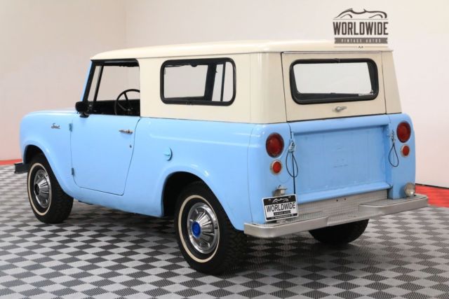 CALL OUR SALES TEAM! 1-877-422-2940 Worldwide Vintage Autos is one of the largest classic automobile consignment dealerships in the world. With over 200 vehicles in stock spanning over 60,000 square feet, we have what you are looking for! We provide top tier service for both online buyers and in-person transactions. Stemming from the sales over 1,000 cars a year, we have become experts in domestic and international shipping and can help you find a shipping company to safely transport your new purchase to your garage. To viewcurrent and upcoming inventory please go to our website Worldwide Vintage Autos [. c o m ].If you do not see the vehicle you want in our inventory, make sure to sign up for‘VIP UPCOMING INVENTORY’, found on theleftsideof our homepage. Worldwide Vintage Autos is pleased to present this 1963 International Scout 80 4x4. Scouts are becoming extremely popular! Get ahead of the market and own this one today! HISTORY In the early 1960s International experimented with a camper body permanently mounted to the Scout 80. The roof was raised to nearly double the original height (to allow standing upright inside), tented sleeping bunks folded out of the sides, and the rear of the body was extended significantly. The tailgate/liftgate system was replaced with one large ambulance-style swinging door. Plans included that the unit could be purchased as a stripped down shell ($960 installed), or as a "deluxe" unit, which included a dinette set, stand up galley, and a screened chemical toilet that retracted into the wall ($1850 installed). The May 1963 issue ofMechanix Illustratedcontains a full color ad for the Scout Camper on the inside cover, which features two artist's renderings of the unit and a form to fill out and send in for free literature. The camper shows up again in the May 1963 issue ofPopular Science,this time in an actual photo as part of a two-page article about pickup campers. Production of these units was low due to limited orders and they are rare today. SOURCE: WIKIPEDIA SPECIFICS / BUILD INFORMATION EXTERIOR -Light Blue Body with contrasting White Top. -Large Rear Bumper. -Steel Wheels with Radial Tires. INTERIOR -Extremely clean vinyl bench seat. -Original dash and gauges. -Manual Transmission on the floor. MECHANICAL -"Commanche" Inline 4 cylinder motor (152 CID) from a 1965 Scout 80. -Manual gear box. -4x4. -Removable Hard top. DISCLOSURE -There are a few chips / imperfections in the paint,body and bumper. (See detailed pictures) -Window seal is repaired with tape. (See detailed picture) For more details on any disclosure items please contact a sales agent today at 1-877-422-2940.Own this vintage 1963 International Scout 80 at a fraction of the build cost. The cost of parts and restoration of these vehicles are increasing daily. They are not making any more and, therefore, they are becoming more rare by the day. Buy one complete and ensure your investment for the future. Doing a restoration / customization project on a Scout like this would cost over $10,000not including the vehicle itself. Don't do the work yourself, get one finished for roughly half of the cost of building it yourself!An excellent investment and something you can enjoy daily. Collectible vintage vehicles have historically appreciated at a rate greater than that stock market, gold and other arts and collectibles as documented by many articles and auction result tracking. NEED MORE DETAILED INFORMATION? CALL US AND WE WILL HELP ANY WAY POSSIBLE! 1-877-422-2940 WORLDWIDE VINTAGE AUTOS [. C O M ] FINANCING: JJ BEST BANC. COLLECTOR CAR FINANCING 800-872-1965 Please mention you are working withWorldwide Vintage Autosin order to expedite the process. DEPOSITS: Deposits to hold vehicles is $500. Upon payment of the $500 deposit, the vehiclewill be held for7 days pending final payment. Deposits are non-refundable due to i). the vehicles are taken off the market and we turn down other buyers during the7 day period and ii). there is significant re-marketing costs associated with relisting / remarketing our vehicles. Inspections shouldbe performed prior to putting a deposit down on a vehicle. INSPECTIONS: We encourage inspections. We disclose known defects and imperfections but we are not you. Purchasing a vehicleis very subjective. Come visit our showroom in Denver,CO, we would love to meet you in person! SHIPPING: We recommend having our shipping coordinator facilitate the transport of your new vehicle. We can handle all shipping arrangements in-house, so you know where your vehicle is from point ‘A’ to point ‘B’. We highly suggest using only enclosed shipping to protect your investment. We useCentral Dispatchand they ensure all carriers are licensed, insured and bonded. INTERNATIONAL BUYERS: We have sold and shipped vehicles all over the world, with happy customers in Canada, Europe, Australia, New Zealand, Japan, South America, and the Middle East, just to name a few. We can assist with the transport to your home port anywhere in the world, as well as help with the required export/import paperwork. We recommend the following import/export contacts: •Halmari, in Houston, TX @ 1-713-644-0444 •Schumacher Global Transport@ 1-800-599-0190 We specialize in: 1. Vintage trucks and 4x4’s! Pinzgauer, Unimog, Defender, Bronco, Land Cruiser FJ40 FJ45 FJ55, International Scout, Jeep Willys, Dodge Power Wagon, Nissan Patrol, Ford Truck 4x4s, Chevy Truck 4x4s, NAPCO, Marmon Herrington, etc. 2. Vintage American Cruisers! Cadillac Biarritz, Chrysler, Lincoln Continental, Oldsmobile, Convertible, Mercury, DeSoto, Ford, Chevy Belair, etc. and; 3. Muscle cars! Camaro, Chevelle, Nova, Challenger, Charger, Corvette, Biscayne, Cobra, Torino, Mustang, AMX, Falcon, Demon, Dart, etc. and; 4. European Classics! Porsche, 356, Speedster, Mercedes Benz, Austin Healey, Austin Martin, Rolls Royce, Volkswagen Microbus, MG, etc.... Although not a “no reserve” auction, the askingprice of this vehicle is well below