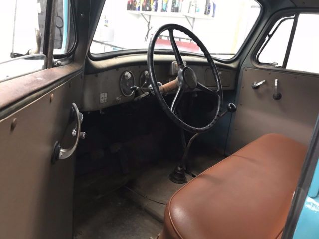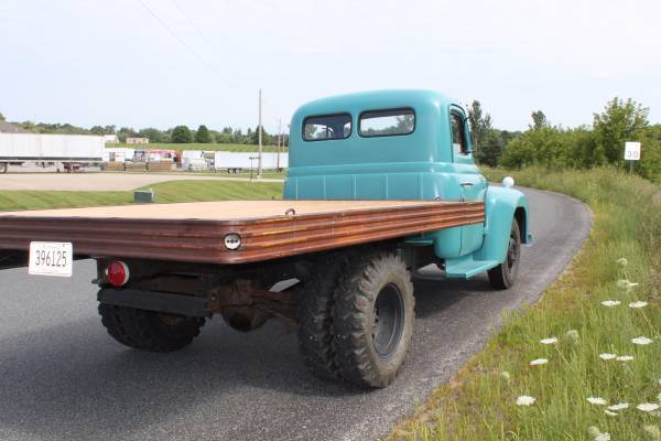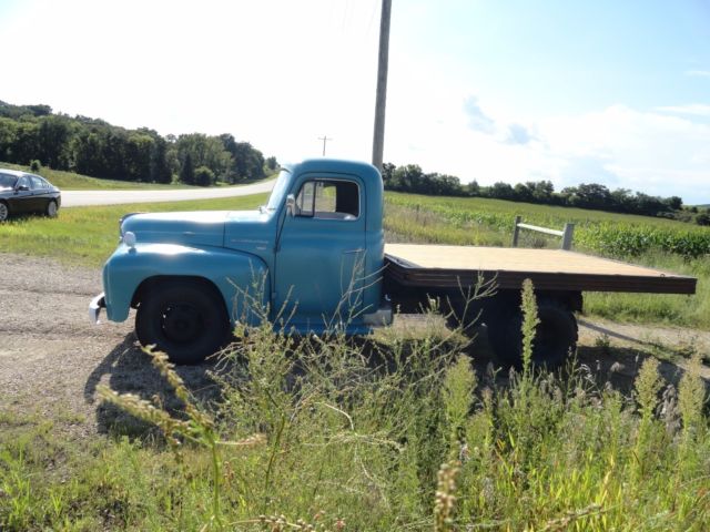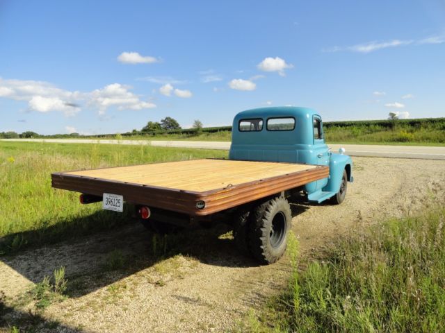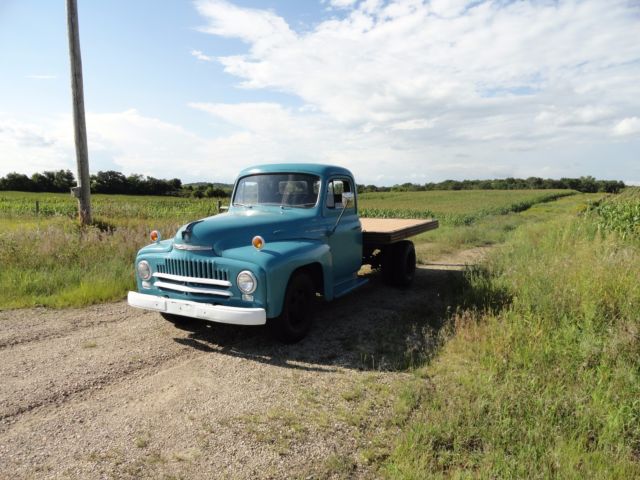 1952 IH L-130 with all original drive-train and 20k original miles. Runs and drives like it should. ND truck, rust free! Recent paint job, 6 new tires, battery and cables, new glass and seals, new exhaust, reupholstered seat, lights work, new interior panels. 4 spd manual transmission. The speedometer does not work, needs a new cable, and it does have a rear main seal oil leak. Flat bed has new douglas fir and has the original hydraulic hoist that still works but does leak fluid. Paint is amateur quality.