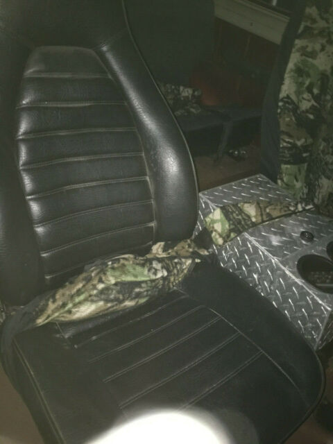 - Recaro Porsche 911 black leather front bucket seats w/ camo covers (drivers seat has partial split in bottom cushion seam-repairable). Original plaid 60/40 front bench seat also included.