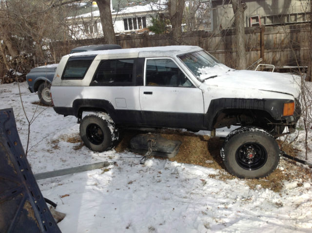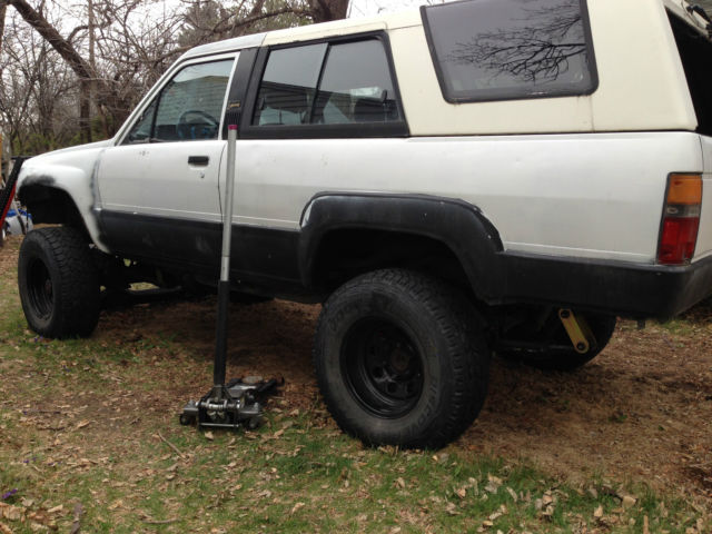 1984 4runner Project. This is a project rig. However it can be moved under its own power. It will need to be towed. The body has had the rust repaired in the fenders but was never finished. Work that has been done-100% New Stock Suspension on all 4 corners. I have shocks for all 4 but haven't put them on yet. Installed a 2" Body liftNew Head Gasket. Timing Chain(upgraded to metal back guides). Hi-Flow Oil Pump. Also when i pulled the motor out to rebuild the cylinder head. and reseal the motor. i never finished mounting the radiator fan. and the carb needs linkage adjustment to function properly. Shortly after the rebuilt head went on the rings went out. Shes not burning any oil but has excessive blow by. Replaced all gaskets on the motor. including the rear main. New Tires-31x10. 5R15New Wheels-Procomp 98s1" Trail Gear Wheel SpacersNew BatteryNew Marlin Short Throw ShifterList of Parts That Come With The Truck*Replacement fender for the drivers side*2 tops. one white. one black in fair condition*A frame reinforcement kit for the front of the frame*A second hood*2 Grills*IFS steering kit. for easy high-steer conversion* Ruff Stuff Chevy 63" rear spring swap kit. Including 63" Chevys*2 seats in fair condition out of a second gen 4runner. * Currently has a weber 38/38 on it. but i do have the original asin. and vacuum tubing. *Misc assortment of parts* FJ80 Axle Housing*Tube Front Bumper*MISC Wheels * Set of Half Doors(Need work)INTERIOR IS ROUGHIf i remember anything else i will try and update the list. Just trying to get out of it what I have into it. It is a tow away. Buyer Responsible For Shipping