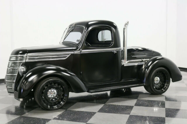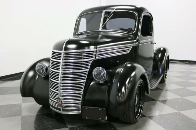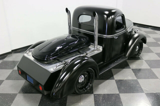 Under the hood is a fine replacement for International's six-cylinder, because you now have a trusty Chevy 350 V8 that quickly snaps to life thanks to a Fi-Tech EFI system. With more than just good and reliable power, it has reliable components like an aluminum radiator and electric fan, so this big rig stays cool even in traffic. But that's the practical side. What you really want to know is how the headers feed the glasspacks before exiting out of those tall stacks, combining for a mean street rumble. Oh yes, this one has some serious presence with its appearance and sound. It also sits so sinisterly low when parked thanks to adjustable airbags in the rear. On the road the D-2 feels nice due to an independent front suspension and trailing arm rear, likely borrowed from a muscle car era Chevy. Add in more great driving features like the TH350 three-speed automatic transmission, power steering, power front disc brakes, and the grip of modern Lexani tires, and this a cool looking custom rig that can easily take the long haul. AM/FM Radio CD Player Defrost Air Conditioning Heat Tilt Wheel Vinyl Interior Front Disc Brakes Power Brakes Power Steering Seatbelts |