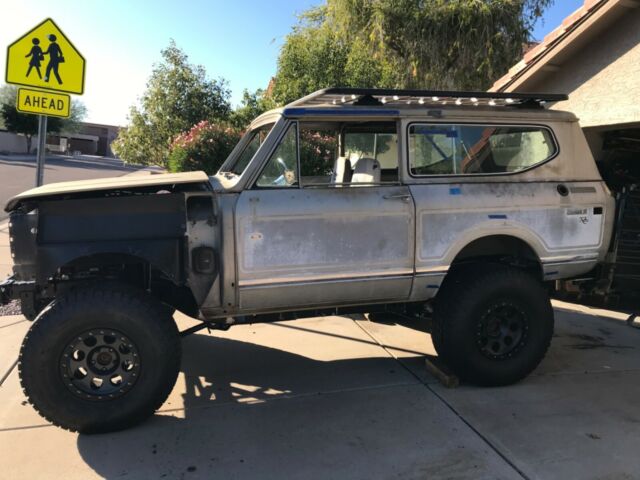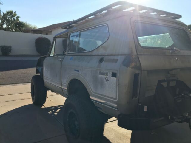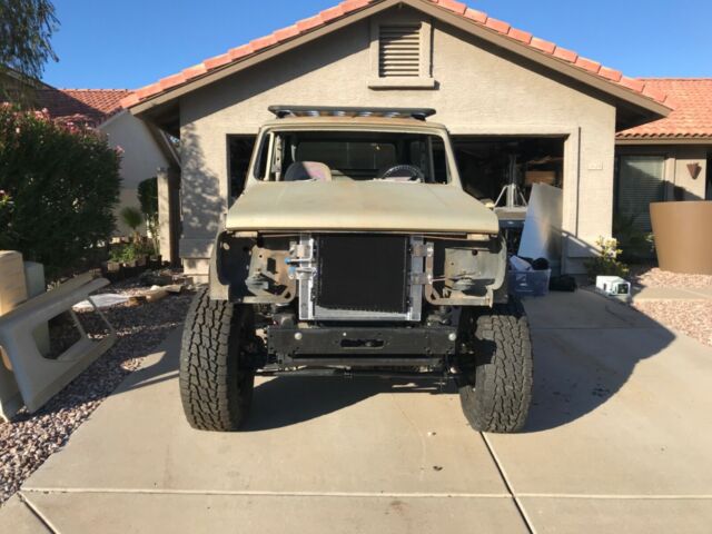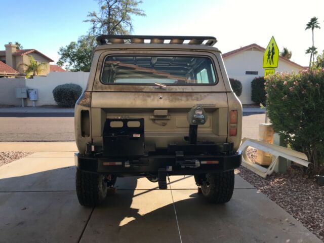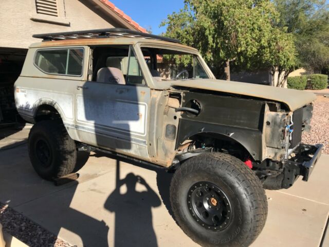 1975 International Scout II XLC. 98% rust free with all original panels, floors, rockers, doors, etc. Original paint (rare metallic champagne color similar to Jeep Wrangler’s Khaki color). Chassis is a 2017 Jeep Wrangler Unlimited (NEW Mopar frame at $3500.00. A new frame was preferred so as to not have competing frame VIN numbers with the body VIN) with low mileage Rubicon axles with OEM electric locker and 4:33 gears ($4500.00). Suspension is all new Rock Krawler with adjustable arms all around ($1300.00) with new adjustable Rock Krawler track bars front and rear ($360.00) with new Bilstein shocks and steering stabilizer ($425.00). New heavy duty front and rear OME coil springs ($350.00). New wheels and 35†tires ($1775.00). New calipers/brakes all around ($650.00). New hydroboost brake booster ($565.00) with CBR racing power steering pump and remote reservoir ($775.00) mounted to engine using Wide Open Designs kit ($290.00). New ANYTHING SCOUT aluminum radiator with shroud and four heavy duty Spal cooling fans ($1400.00). New GenRight high capacity aluminum fuel tank with steel skid plate ($1550). New in tank fuel pump with adapters ($480.00) installed with AN6 fuel line installed to engine. Low mileage 2011 all aluminum Generation IV 5.3 Vortec V8 ($3500.00) engine (approximately 340 horse) with v-band headers ($595.00). Engine is wired ($720.00) E38 computer programmed ($260.00) and ready to run. Engine placed with RPM Extreme motor mounts ($300.00) with 6l80e six speed ($2500.00) automatic transmission using RPM Extreme transmission mount ($150.00). Rebuilt Jk transfer case ($750.00) with new Novak adapter ($560.00). Lokar 6l80 shifter (with tap shift) installed (ESS66L80HM: $380.00) as well as JB Customs transfer case shifter ($225.00). JK OEM steering gear and pitman arm ($450.00). New Ididit tilt keyed black column and linkage ($1065.00). New billet steering wheel and hub ($200.00). New VINTAGE Air Magnum IV A/C ($1100.00) mounted with ducting and controller. New Wilwood master cylinder and proportion valve ($300.00). New brake lines. New 02 sensors ($170.00). New front Corbeau RS reclining seats ($750.00). New rear sway bar. Front sway bar is the Rubicon version with disconnect feature ($400.00). New KAYMAR rear bumper and dual swing out tire carrier and gas rack—over 4K plus shipping to US. Rhino Rack platform roof rack ($1100.00). AEV hidden winch mount (no winch). Brakes are 95% completed: need to add fluid and bleed. New emergency brake lines are installed but need to mount the new Wrangler e-brake and attach the lines. After that wire the new Ron Francis XP66 fuse bock/relay module ($500.00) to the battery, hook in the engine wiring harness leads (five wires), run a single wire to the fuel pump connector, put gas in it and the engine will run (radiator has no fluids, engine does not have oil, etc.). Minor fabrication remains with minimal, simple welding to the frame side body mounts and the frame splice (it’s tacked now). No other parts needed to run and drive. Drive train is installed and near-ready to drive. Steering is installed and near-ready. Will need a front drive line. Suspension and steering will need to be torqued to spec. The interior paint is in very good condition. The dash pad has no cracks. I have all the original sheet metal: grill and both fenders as well as the dash. I do not have the headliner for the hard top but I have the OEM fiberglass molded sides in very good condition.The doors are rust free and open and close as they should. Gaps are uniform. The rockers are rust free and solid with no damage. The floors are original with minimal rust which is predominantly surface rust only. None of the flooring needs replacing. None of the body panels need replacing although there are minor dents in various places that are easy to repair with hammer and dolly. I have over 40k in parts not including shipping and certainly not including labor. This figure does not include the value of the rare, OEM khaki-colored and virtually rust free 1975 Scout XLC body (I have all the original sheet metal in very good condition).Items needed to finish: windshield, carpeting, shifter boot, dash gauges, door rubber seals, exhaust with cats and mufflers and a battery. See: New Legend Scout’s similar offerings beginning at $165,000.00. Yes: one hundred and sixty-five thousand US dollars. I have a 100 % tear in my rotator cuff with a 9 month recovery AFTER surgery which is scheduled fir December 23, 2019. I am upset at the injury and the length of down time. Otherwise I would never sell. I am an Arizona licensed attorney. This Arizona Scout has a regular Arizona title. |