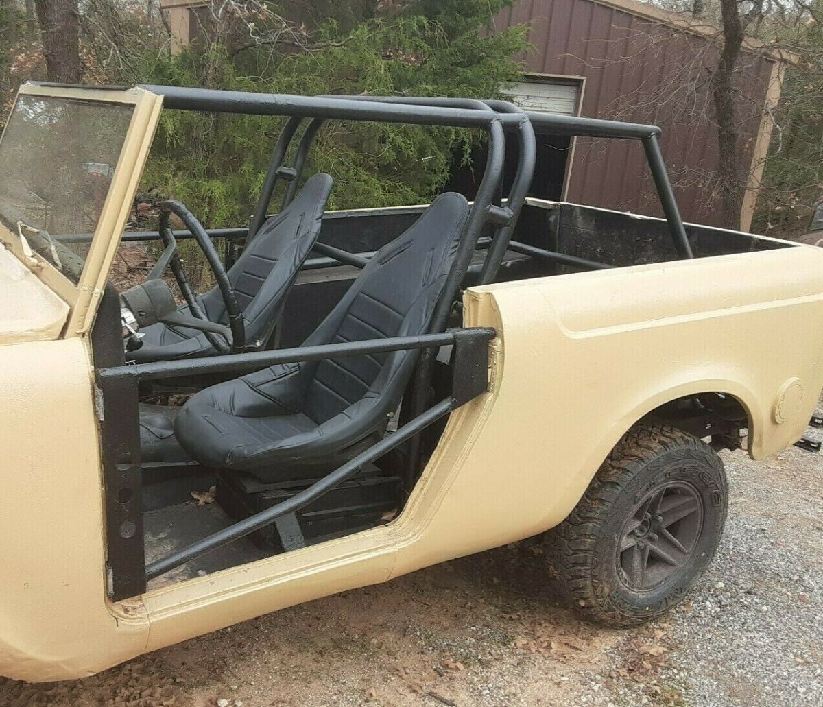 This is a NO RESERVE auction, there is no buy it now price. Only bid if you fully intend to close the deal at the end of the auction. It takes time, money, and effort to post on here, so please, no time wasters!. This Scout is highly modified in that it is a 1967 scout mounted to a 1990's chevy s10 blazer frame, It retains the blazer FIVE SPEED manual transmission with overdrive, hydraulic clutch, 4.3 vortec v6, converted from fuel injection to a new electric choke carburetor and performance distributor, new fuel pump, plugs, and wires, new battery, new tie rod ends, drag links, idler arm etc, Truck has power steering and front disc brakes. All terrain tires have less than 5 miles on them, mounted to aluminum wheels . Windshield is new, scout has a pretty stout looking roll bar and tubular doors, truck is covered in tan bed liner. Seats are light weight poly with vinyl black seat covers that are removable.Floors are original with a couple small patches. The frame is also very solid. Truck was completely rewired, it has a new GPS speedometer, triple gauges, turn signal switch, and off road lights. Truck is significantly faster, quicker, stops and handles much better than when it was new! This Scout came with about 80 horsepower and a 3 speed when new. It now has about 160 horsepower and 5 speed with overdrive.All mechanical parts are chevy s-10, so it is very easy to get whatever it needs at your local parts store! No searching for hard to locate scout parts, yet still have the unique looks of a rare old scout!The truck is fun to drive! It has been driven short distances off road, runs/shifts/stops well. This is a real attention grabber, people ask about it whenever they see it.The scout is over 50 years old,(blazer is over 25) it is not a new Toyota, it may need more work/tinkering/finishing, depending on what your goal is with it. This is a NO reserve auction, you are bidding to OWN the scout, therefore, the $500 deposit is due at the end of the auction and is not refundable. You are welcome to ask questions or set up a time to come see it and I will do my best to accommodate you. Car is titled as a 1967 scout, fresh TX title in my name in hand. Thanks for looking.