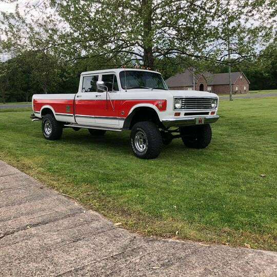 1973 International Harvester 1210 Travelette long bed. Has the later 1974/75 Hood, grille, and lower valence but is a 1973. Truck has a 392 V8 EFI, Transmission is T34 overdrive 5 speed. IH NP205 transfercase. GM dana 60 front with 4.56 gears, GM 10.5'' 14 bolt with 4.56 Detroit locker. Has 6 inch lift kit with alloy wheels and 35'' tires. Has front buckets with console. Truck has A/C that blows ice cold. Also has fuel injection. As Sony aftermarket radio setup for a sub. Has stock dual gas tanks (15 gal each) as well as two rear tanks (25gal each). Truck is rust free. Needs nothing can get in and drive anywhere.