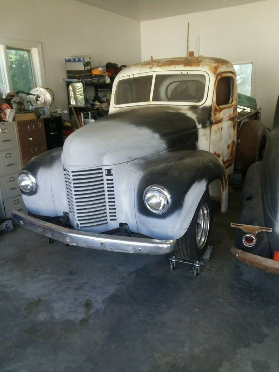 1946 International Harvester Shortbed Pickup. Original Arizona Pickup with 95% of bodywork completed surface rust only that will clean up with metal prep. The truck is complete including running boards and under bed spare tire carrier. All new glass all the way around, ( both door glasses roll up and down). After market tail light assemblies are included. The engine is a 214 flathead (green Diamond) and three speed manual on the floor. Includes the firewall mounted heater unit. Vehicle is not running and will need to be trailered. .There is an after market extremely heavy duty grill guard and various extra spare parts. The truck is being sold as is where is with a clear Arizona Title..