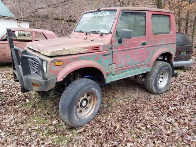 This auction is for a 1988 Suzuki Samurai hardtop with sunroof to be fixed up. I have already done a lot of work to the Samurai which will save you a lot of money. The body is good & solid it does have a small dent on drivers side front fender were parking light is. I had always wanted a Samurai diesel,but did not like a Volk wagon diesel simply because they just don't last like a Isuzu diesel. The 2.2 diesel I got came out of a truck my cousin bought new & after he died I bought it & drove it for several years & got a mechanic to take the 2.2 diesel & 5 speed trans out of the Isuzu truck & install it into the Samurai,the motor has a 146,000 actual miles & has never been into, & motor & trans ran good.I had him install a new clutch pressure plate & throw-out bearing.These motors are known to run to over 500.000 miles & I personally know of 1 with over 1 million miles on it & never was torn into. The Isuzu diesel radiator was modified at the radiator shop to fit in the Samurai. I sprung over the leafs to add height & a 3 inch lift on body,4 new shocks, new spool in rear end, 4 brand new B.F.Goodrich 31 inch tall tires. A extra heavy duty winch bumper with a factory tow bar made to fit it. I have a brand new diesel muffler that I just put on the truck but had it took off to put it on the Samurai. There is a old transfer case I got with the Samurai but you will need to either have it built or buy another one & install it & recut & install the drive shafts back in . When the mechanic put the motor & trans in some how he broke the aluminum tail housing on the transmission & will need to have another tail house put on the trans, it will need a back bumper & front buckets recovered & redo interior & paint the Samurai inside & out or you could camouflage it. My health has gotten bad & not able to work on it anymore & even though I am loosing a lot of money I would rather see it fixed up than just set there. I have way over $3000.00 in it the way it sits. If you have any questions just ask & I will do the best I can,