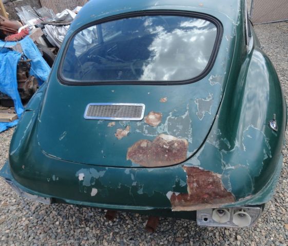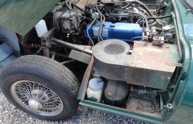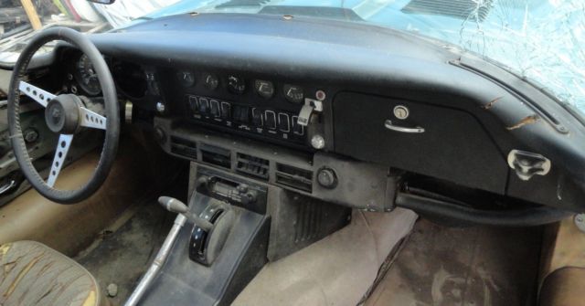 | This is a 1971 Jaguar XKE Series III 2+2 Coupe. 8/71 production date. Before I part it out into a million pieces, t has a 77 Ford 302 V8 with C4 automatic tranny. They fit it in there without hacking apart the firewall or front birdcage.I got it to turn over but not started. Put a new starter, lug wires, oil, gnition module, lugs, tc in but it is not getting spark. the body has dents and other damage, ut is actually pretty rustfree.Nice flat solid rustfree floors, ice rockers and all around clean and rustfree. Looks like it had some poor bodywork done on the right rear.. Thick bondo falling off. The passenger door has a pretty good dent in it. The windshield is broken, he rear side glass is missing. The tachometer is gone, s is the ignition key as someone drilled out the tumbler.The interior is original. Meaning dried out and needing replacement. The dash is not bad with most or all switches and gauges present. . |