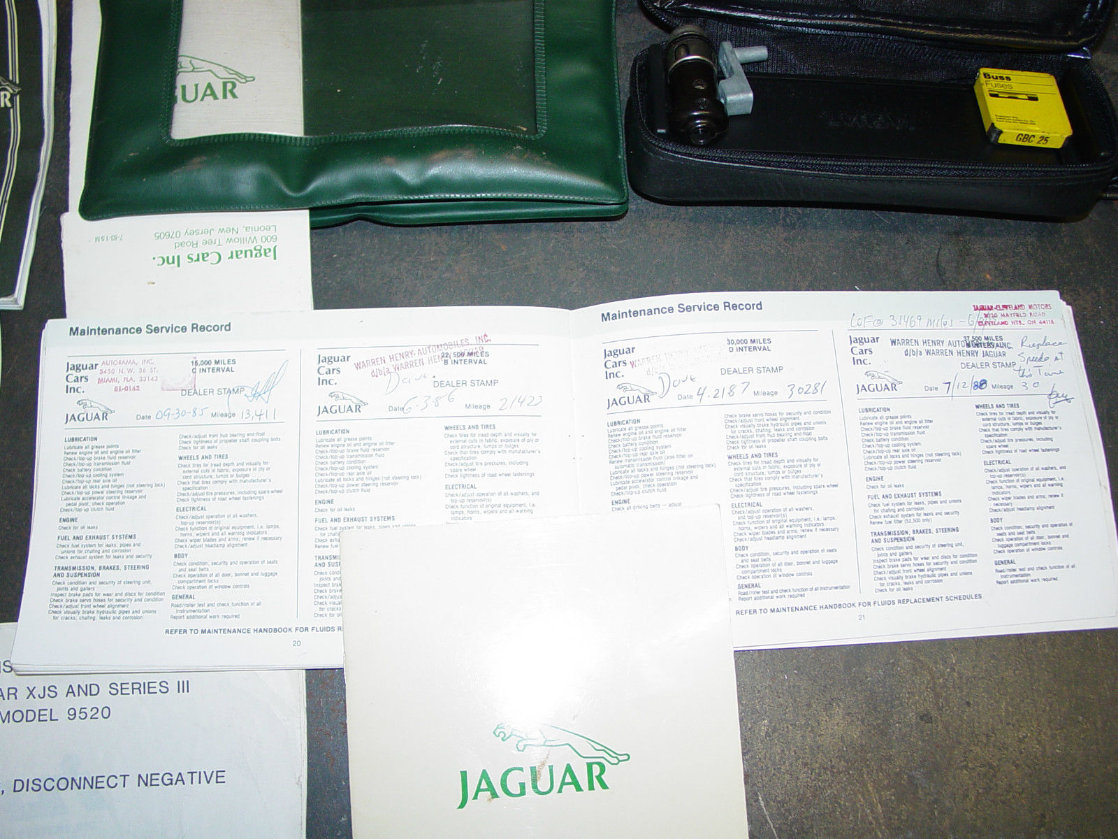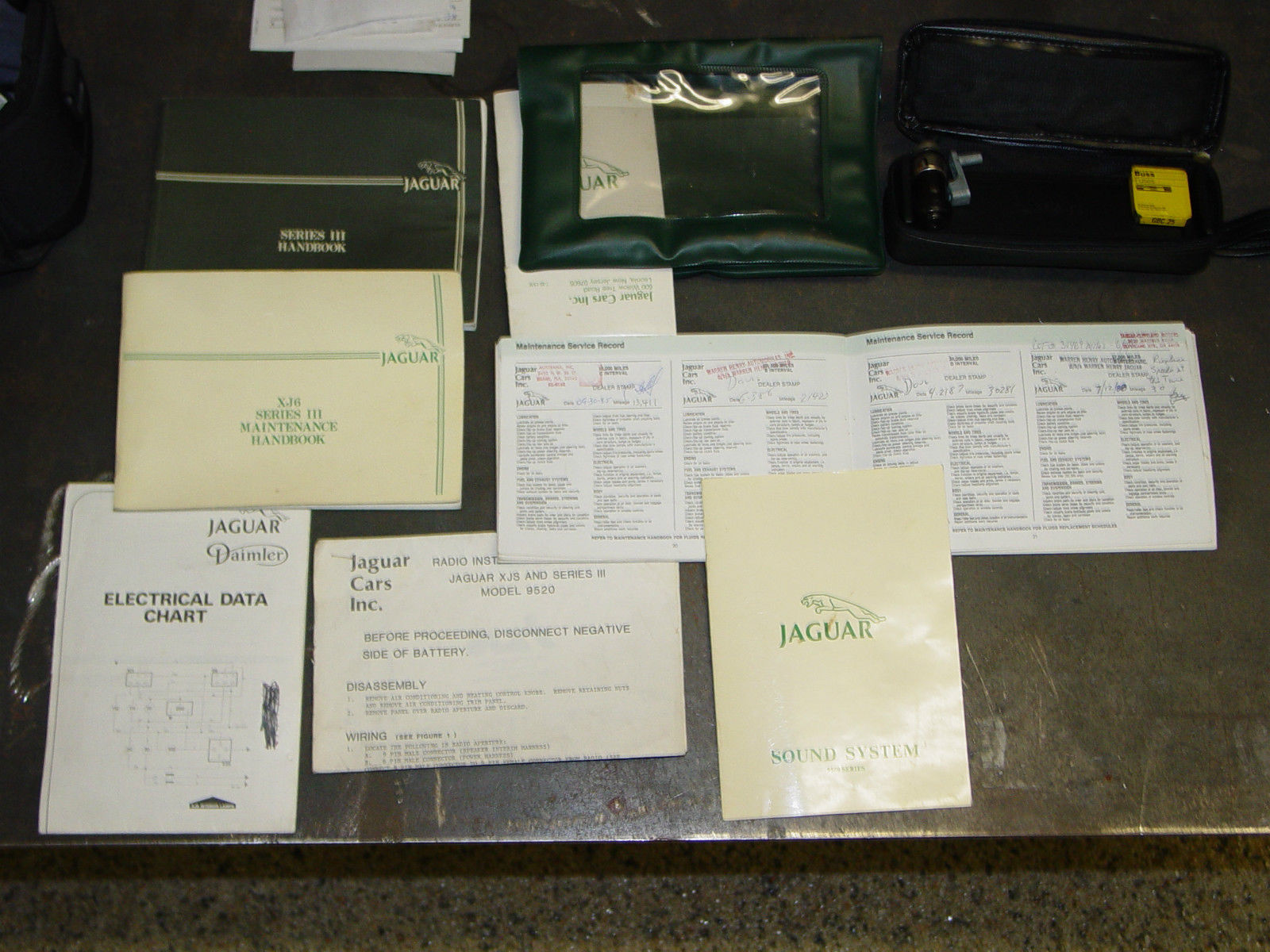 | I purchased the vehicle in 1997 with 60K miles on it. The original owners log book stated the dealership installed a new speedo at 60K+ miles. The vehicle now has 66K on the odometer. My good guess would be the entire driveline has near 126K + miles on it. I sent the car to a dear friend in Canada who only does restoration work on Jags. Healy's and Mini's in 1999. It stayed in his shop and got new suspension components. Brakes were rebuilt including new lines. new shocks. U joints . ome exhaust work. Air conditioner was changed to the new gas and oil. new windshield. new headliner. new wipers. battery. fuel tank senders and switch. antenna. various other repairs and replacement of components to make a good solid driver. All fluids were replaced as well. The entire body is now rust free inside and out with numerous repair panels installed right from Jag. The new paint is deep black with a silver painted pin stripe and a new hood leaper. Custom fit Jaguar car cover included. Four new Michelins and factory new take off wheels. and I have the original set. The automobile came back to me in 2004. it has been stored indoors heated on a four post lift since. There are only 6. 00+ miles on it since I purchased the automobile. I have receipts for far more than this automobile is actually worth. The engine. trans and axle are all original mileage. The interior is all original wood and leather as well as carpet and does show some age. Please look over the photographs. if you have a question please ask. Thank youGood luck with your bid. |