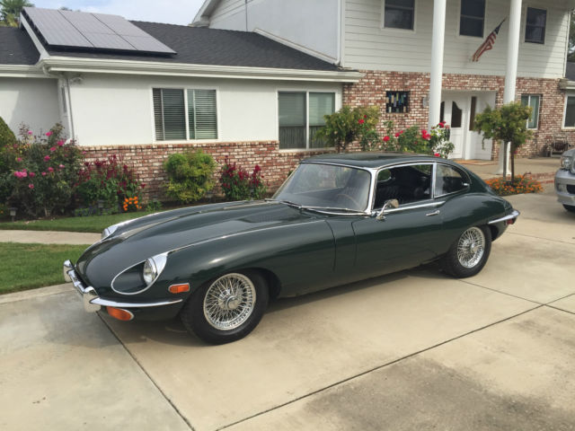 I purchased this cars years ago from my brother. He in turn had purchased it from an elderly man that had kept the car garaged in San Diego. There is no significant rust on the car. The paint was stripped early in the life of the car. The body was lead filled and repainted the original factory color. There is one small thumb side indention in the side of the right front fender. You cannot pick it up in the pictures. The original engine was rebuilt about 8 years ago by Walt's Jaguars in Idaho. It was built back to stock specs with the addition of some nice Iskaderian cams. The car idles nicely and you do notice the cams in the higher rpm ranges. A standard upgrade to the car is the addition of the T5 5 speed manual transmission. You run about 2700 rpm at 70 to 75 mph in fifth gear. Very relaxed. There is about 3500 miles on this set up. I upgraded the clutch to a center force unit and it has a good feel. I have a stack of receipts that go with the car. Maintenance has been kept up on the car. The work has ben professionally done by Auto House of Clovis. They maintain my other British Cars and they do quality work. The pictures should speak for them selves. There are small items to attend to as is there is with any older British car. The choke knob needs to be reattached and the oil pressure gauges needs to be upgraded to a mechanical unit. I have had mechanical oil pressure gauges fitted and the pressure is good. I drive the car once a month on a 150 mile round trip to visit my mother in Merced, a. The pictures were taken after my return last Sunday.Car runs great and has never overheated on me. The aluminum radiator was fitted when the engine was rebuilt. The fans were rebuilt at the same time. The interior is original and is worn in spots. There are no rips or tears. It is just a well maintained old car. I hate to see it sit. Somebody else should be enjoying it. I have too many other cars and I just do not drive this one enough.On Oct-29-15 at 12:59:12 PDT, eller added the following information: To answer a few of the questions -Hi I will have to find a friend with a good camera. No rust on any of the suspension areas. It was repainted in 1980. It was painted the original factory color. The paint is good for its age. No checking or cracking. No previous accidents. Look at the gaps. They are better than most. The tires are about 10 years old. One should be replaced in the near future. The front end was recently aligned and the car does not pull to either side. My brother had the standard 5 speed kit installed. The supplier reconditions Camaro 5 speeds and sells a kit just for the Jags. He put the same kit in his Mark II. No issues with either one. The door seals are good. They are not dried out. The suspension pieces were changed about 10 years ago as normal maintenance. All the interior pieces and switches wok. Once in a while you have to tap on the speedo. The choke knob needs to be reattached. I recently replaced the headlight switch. The drivers seat back rest is limited in how far back it will recline. That can be adjusted. Radio, peakers are all in good condition. No significant leaks. There is a small drip or two from the center of the rear axle after a long drive. The brakes were rebuilt within the last 5,000 miles. Carpet is good. Remember the painting was done a long time ago. All the jams etc. match up with the rest of the car. It was a quality job. I have receipts for all the work done to the car including the engine rebuild. It is a nice presentable unrestored car. I have a 71 TR6 that is in the same condition. Personally I like cars like these versus the over restored cars you are afraid to take out and drive. On Oct-31-15 at 11:40:00 PDT, eller added the following information:I do have a pdf file of all the major service records.Send a request to bob850@aol.com and I will forward a copy.Thanks