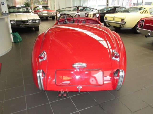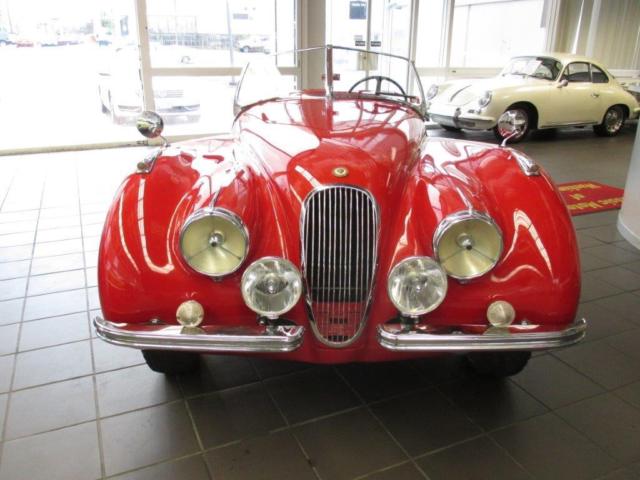 Beautiful example of the simply gorgeous XK 120 OTS. Recently purchased from large private collection where it has been stored and driven sparingly since 1986. Car was totally restored when previous owner purchased it and then was rarely used as he slowly over the years acquired 50 + cars, otor bikes and scooters. He also was an avid Vintage racer as well so most of his collection were museum pieces in a three block long, wo story high building in Buffalo, Y. Wonderfully straight, ust free body with nearly 30 year old lacquer paint that still shows fantastic. Has a few small chips here and there but in remarkable shape overall. All chrome work and glass are excellent. Interior is also very nice with all gauges working plus rear leather trim piece being redone now and will be installed before sale. Matching # engine and gearbox are in the car and both perform very strong. We just took out fuel tank and had redone, ave complete tune, ebuilt both carbs, eplaced all front suspension bushings, ew shocks, omplete brake service and flushed/replaced all fluids as car was sitting last three years since previous owners death. Car now starts right up with that lovely raspy sound and everything performs superbly. Original wheels are in great shape with nearly new tires and does come with factory spare which we are replacing now. Underneath the car is very nice with pictures available upon request. Overall an excellent example with great history that can truly be enjoyed now and with some detailing could be a show car again. If you have any questions or would like additional photos please feel free to email me at Brian@classicmotorsdc.com or give me a call 2403508775.
