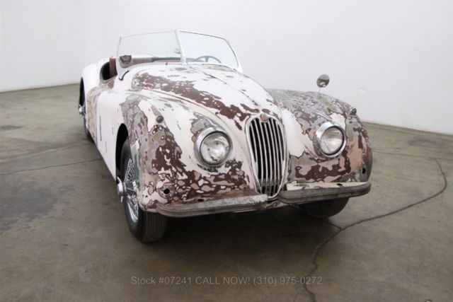 1956 Jaguar XK140MC Roadster1956 Jaguar XK140MC Roadster with matching numbers with a C-type head and factory overdrive in old English white with hints of bare metal and black interior. Comes equipped with a 4 speed manual transmission, dual carburetors, wire wheels and includes the spare tire. Extremely desirable project car with tremendous potential. Fantastic candidate for restoration. For $64,500If you have any additional questions Please call 310-975-0272 or email with any questions! We also welcome all international buyers. We can help with shipping quotes and arrangements., 1956 Jaguar XK140MC Roadster with matching numbers with a C-type head and factory overdrive in old English white with hints of bare metal and black interior. Comes equipped with a 4 speed manual transmission, dual carburetors, wire wheels and includes the spare tire. Extremely desirable project car with tremendous potential. Fantastic candidate for restoration. For $64,500If you have any additional questions Please call 310-975-0272 or email with any questions! We also welcome all international buyers. We can help with shipping quotes and arrangements.