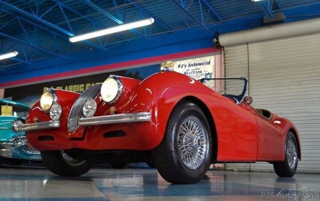 1952 Jaguar XK120 Replica For Sale ( built by Classic and Antique Automotive). a Triumph 2.5L in-line 6 cylinder engine, twin Webber carburetors, the rich sounding exhaust will make you feel like this is a $100,000 car, 4 speed manual transmission, 15"Â wire wheels with Goodyear tires, rack and pinion steering, Mustang II style front suspension, front disc brakes, leaf spring rear suspension, beautiful red exterior, brown bucket seat interior, burled wood dash featuring VDO gauges. The original XK 120 cars can sell for $100,000 and above, you can own this stunning and reliable replica for a fraction of the price. You won't find a better XK120 replica, don't miss this very special automobile!!!!