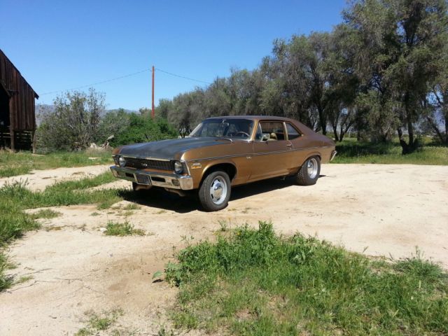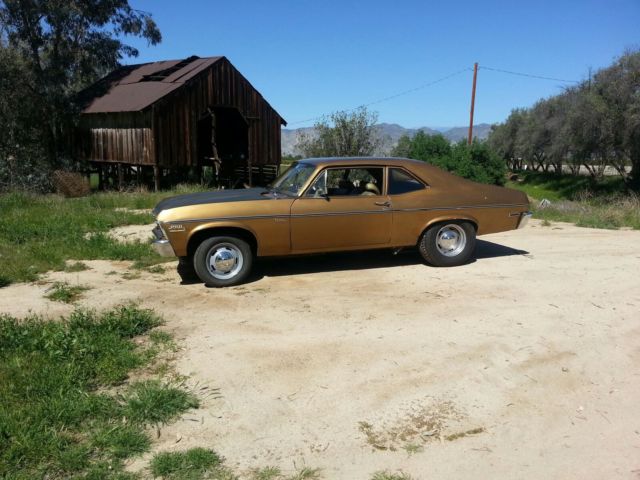 | NO RESERVE 1970 NOVA . NOT AN SS. STARTED LIFE AS AN ORIGINAL 1 OWNER 6 CYLINDER AUTOMATIC. NOW HAS A 5. 3 LS TWIN TURBO 550HP @12PSI THIS CAR IS THE ULTIMATE SLEEPER A WOLF IN SHEEPS CLOTHING. GREAT RUNNING AND DRIVING AND SCARY FAST. DRIVES LIKE A NORMAL CAR OUT OF BOOST BUT ITS AN ANIMAL UNDER BOOST. LOTS OF $$$ INVESTEDENGINE IS A 2003 5. 3 IRON BLOCK WITH 93000 MILES. TWIN 61MM TURBOSTWIN 38MM WASTE GATES1 50MM BOVALUMINUM LS1 INTAKEALUMINUM FUEL RAILS80LB HR SIEMENS INJECTORSCBM MOTORSPORTS HARNESSCUSTOM TUNE TO RUN E85. POSITIVES TO E85. 2. 39 A GALLON . 05 OCTANE. LOWER COMBUMBUSTION CHAMBER TEMPERATURESDIRTY DINGO MOTOR MOUNTS CHEVROLET PERFORMANCE OIL PANSTAINLESS HEADERSNEW LS1 STARTERSPEEDWAY FLEX PLATE AND ADAPTERTRANSMISSION. COLUMN SHIFTTURBO 350 FORWARD MANUAL VALVE BODYHARDENED SPRAGSRED ALTO CLUTCHES AND BANDSALUMINUM PAN WITH DRAIN PLUG10 INCH 3000 RPM STALLFUEL SYSTEM AEROMOTIVE A1000 FUEL PUMP AND PRESSURE REGULATORDASH 10 FEED LINE DASH 6 RETURNNEW GAS TANK AND SENDERMECHANICAL WATER. OIL. TEMP GUAGES. BOOST GUAGE. AND WIDEBAND AIR FUEL RATIO GUAGE . REAR SUSPENSION10 BOLT WITH SPOOL 323 GEARSCALTRACS ADJUSTABLE TRACTION BARSFRONT SUSPENSIONNEW MANUAL DISC BRAKE CONVERSION NEW BIG BLOCK COIL SPRINGSBODY AND PAINT59000 MILE CALIFORNIA CAR. nbsp; 20 YEAR OLD REPAINT TO ORIGINAL GOLD COLOR. NEW FLAT BLACK STEEL COWL HOODMINOR RUST BUBBLING BEHIND REAR WHEELS (SEE PICTURES)RUST FREE FLOORS AND TRUNK (SEE PICTURES)SMALL CREASE IN DOOR AND PASSENGER SIDE QUARTER PANEL (SEE PICTURES)INTERIORORIGINAL INTERIOR IN DECENT CONDITION. REAR SEAT BACK SEAM IS COMING LOOSEORIGINAL DOOR PANELS AND RUBBER FLOOR MATTIRES AND WHEELSNEW 15X4 FRONT RALLEYS AND 15X8 REARNEW POLICE HUB CAPS NEW 255/70/15 COOPER REARNEW 165/80/15 FRONTCONS. FUEL GUAGE NOT ACCURATE. GEAR SHIFT INDICATOR OFF 1 DETENT. PLEASE BID WHAT YOU THINK ITS WORTH. I WILL NOT END AUCTION EARLY. ITS A NO RESERVE AUCTION AND WILL SELL TO THE HIGHEST BIDDER. AS IS NO GUARANTY. IT IS HIGH PERFORMANCE CAR. BID TO WIN . HAVE YOUR WIFES PERMISSION AND FUNDS IN HAND PRIOR TO BIDDING. VIEWING IN PERSON IS ENCOURAGED. SHIPPING IS UP TO WINNING BIDDER BUT I WILL STORE FOR A MONTH UNTIL ARRANGEMENTS ARE MADE. MY ZIP 92544. FULL BALANCE MUST BE PAID WITHIN WITHIN 7 DAYS OF AUCTIONS END BY CASH IN HAND OR BANK TO BANK WIRE TRANSFER. THANK YOU HAPPY BIDDING |
