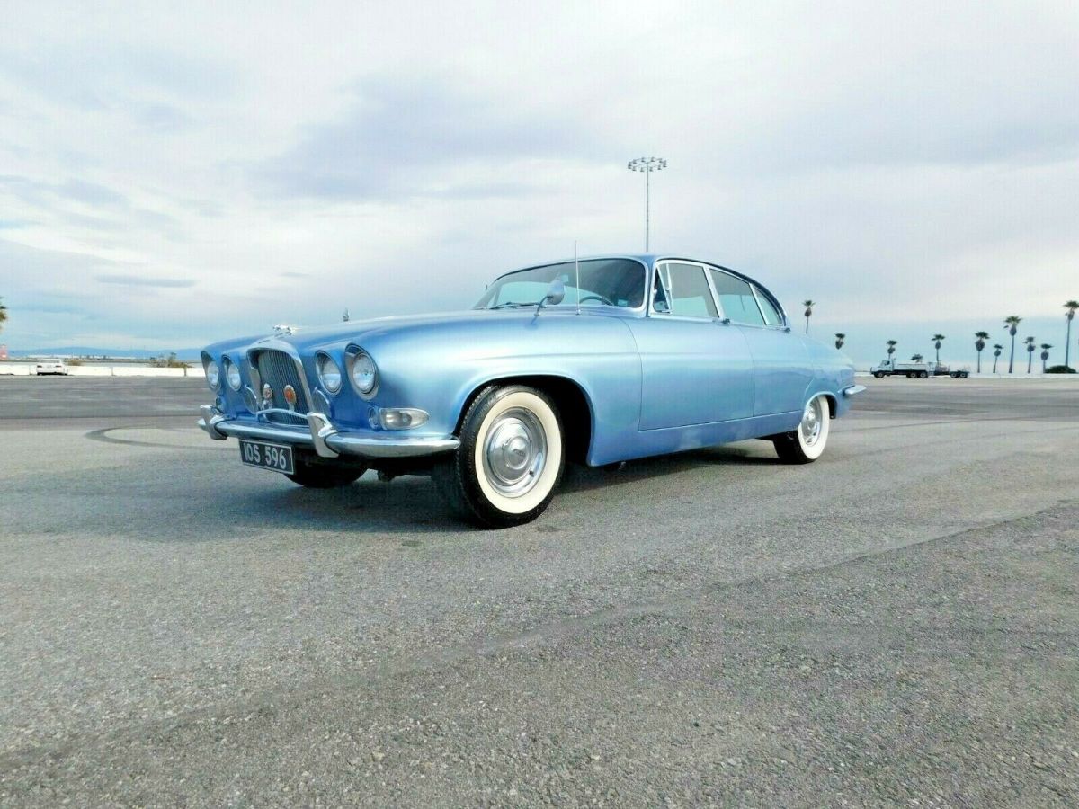 Here we have a 1963 Jaguar MK10 that is a rust-free California 2-owner car with clean California title. This Jaguar has had the same owner since 1976 and comes with service records dating back to that time. This Jag currently runs and drives quite well. It had been sitting for some time and recent work has got it back up and mobile again. Recent work includes removing one of the fuel tanks and servicing it, replacing the fuel pump, new fan belt, new front brake flex hoses, new rear brake flex hose, re-sleeved stainless-steel front calipers, and new exhaust system. According to the records the engine was rebuilt in 1990 then had a valve job in 1999. The car currently only runs from the driver's side fuel tank. The center bearing on the driveshaft is noisy and causes a slight rattle on takeoff and the power steering pump leaks. The tires are old and should be replaced prior to any major driving. The exterior has been repainted in Quartz Blue Metallic and is showing its age with some cracking on the bonnet. There are a few chips and dings throughout but otherwise still looks pretty good. The original leather interior has been re-done in a tan vinyl and is in very good shape with a few slight tears. The wood is also intact and in very good condition. Most of the electrics are functional, brake lights, headlights, wipers, indicators, horn all work. All the gauges are functional. Power windows work but some are a bit slow. Overall this is a very lovely Jag that is a rust-free California car that just needs a little more sorting out to be something great. |