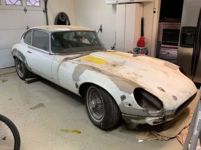 Upfor sale 1974 V12 (double 6) Jaguar E- Type. Original paint color – “OldEnglish white” This is complete car that was drivable before startingrestoration project. Unfortunately restoration wasn’t completed due to myillness. Thecarsteersand rolls, it can be transported. Registration under my name and will betransferred to new owner with clear title. Mostparts was replaced with brand new parts from online Jaguar Parts store orprofessionally rebuildet in automotive store. Gas tank was removed, cleaned andspecial coated from inside.Radiatorwas removed, professionally cleaned and treated in Radiator shop. Installed newcooling fans (original exist) new rubber hoses, new gaskets…The seatsare in great condition, with new head pads, front driver side floor wasreplaced with original floor metal sheet (shipped from England) most of partsare brand new, I also have spear usedbut in good condition light lenses. Front chassis parts has been restored or replacedwith newbrake parts, Teflon bushings, new front gas shocks installed… Allposted pictures are actual car pictures. If you interested in some pictures Ididn’t tak, please ask I will gladly take more pictures. Buyermust pay a $1000 deposit within 48 hours end of auction.Thefinal payment is to be received within 7 days of closing auction Pleasefeel free to contact me if you have any questions I will assist with shipping, buyer pays allshipping expenses. Local buyers can view car in Frazier Park, California byappointment (818)652-3554 |