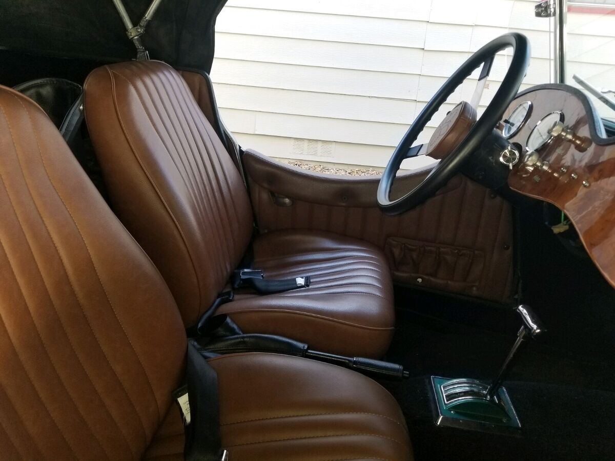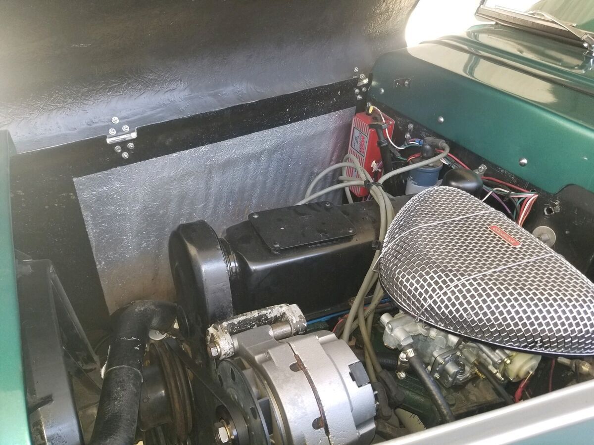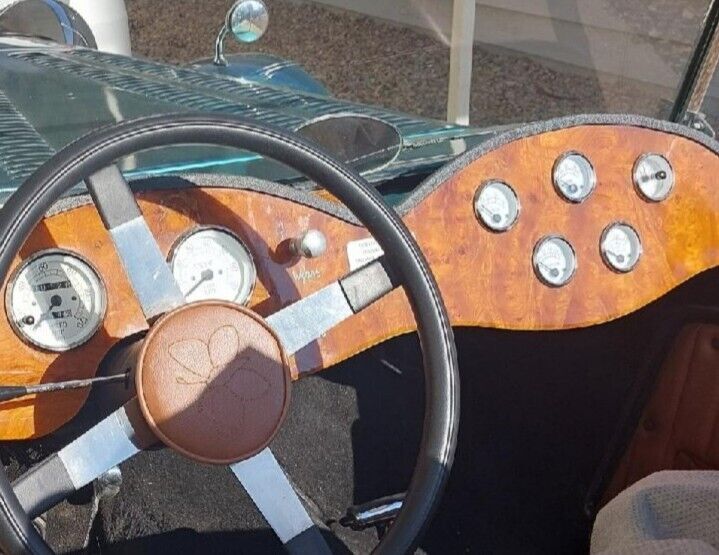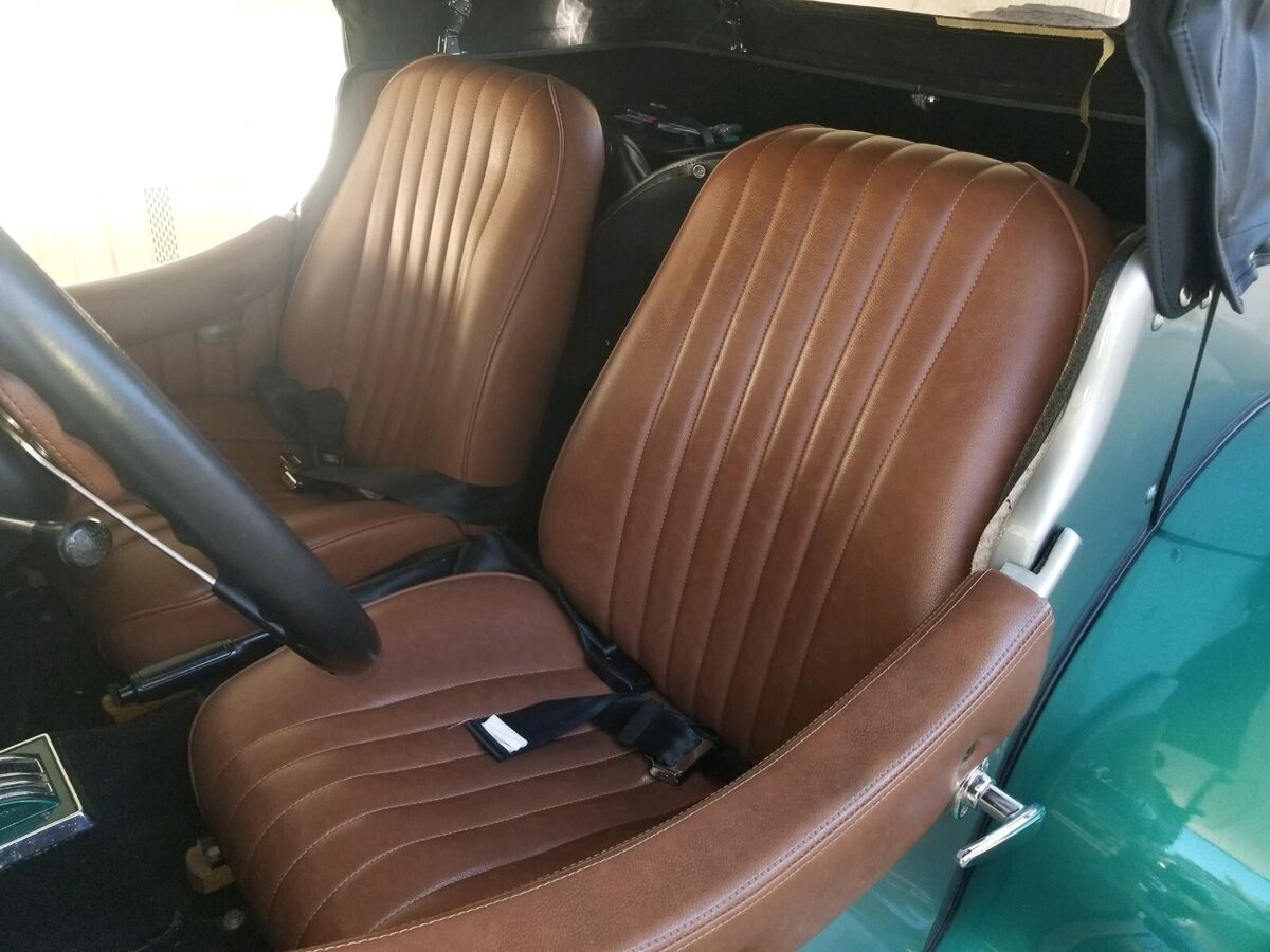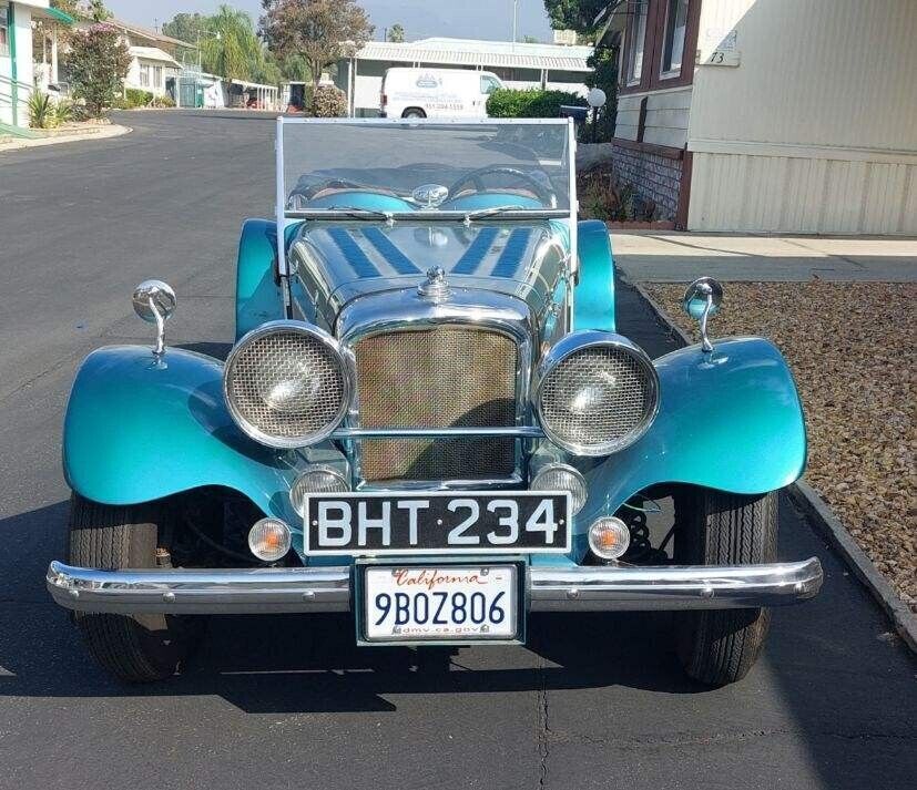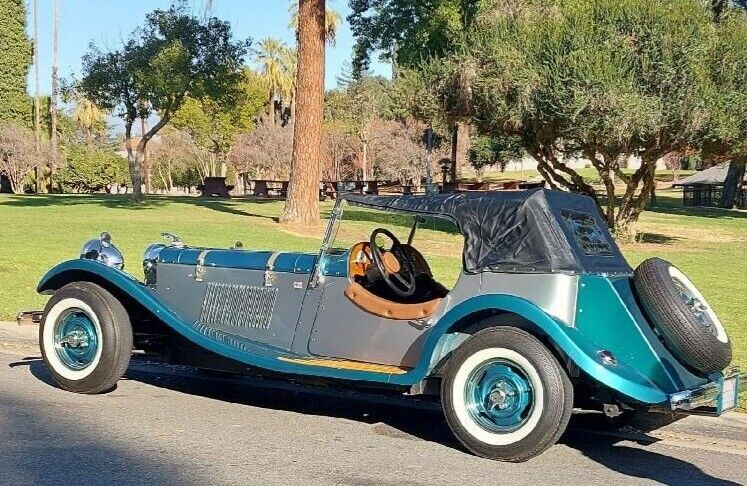 1938 Jaguar ReplicarBuilt on and using a 1974 Ford Mustang frame and running gear. The 4-cylinder engine and automatic transmission provide more than enough power to move the fiberglass Jaguar body down the road bringing her to a stop with manual breaks. The interior and top are pristine as can be seen in the photos. The e-break will need adjustment and the gas tank sending unit is finicky about always working. The Emerald Green and Silver paint enhance the chrome from the taillight bezels to the headlight bezels and grill. The hood louvers and hold-down straps have been accented using detailed pin striping. The color matched wheels are accented with beauty rings and two winged knockoffs shod with 14" WW tires. Roadster, classic, kit car |