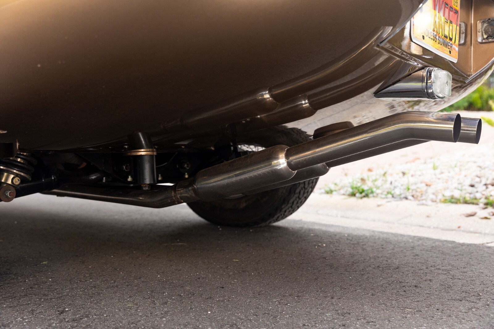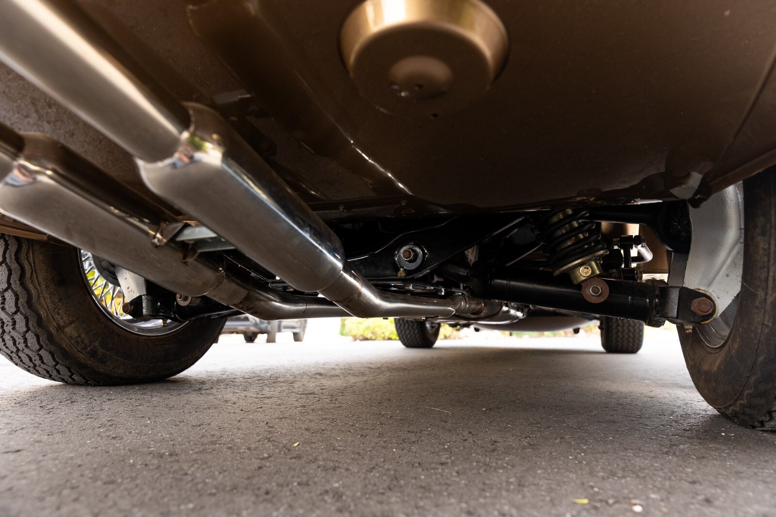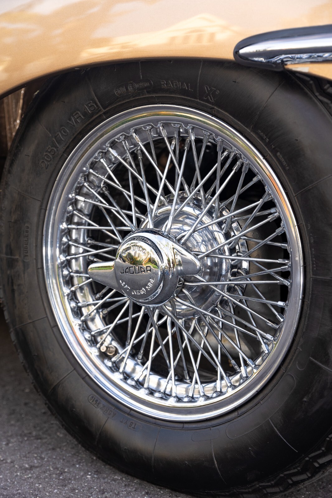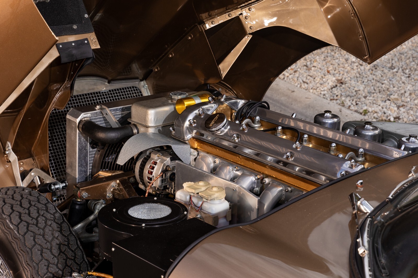 This 1967 Jaguar E-Type Series 1 4.2-Litre Roadster was built on 14 October 1966. A left-hand-drive example destined for North America, this open two-seat roadster left the factory finished in Opalescent Golden Sand over a Red interior with a Sand convertible top. It was dispatched on 16 November 1966 and distributed through Jaguar Cars, New York, USA. Just a two-owner example from new, it was purchased by the consignor in 1973. A comprehensive multi-year rotisserie restoration was completed in 2021. The car was refinished in its original shade of Opalescent Golden Sand, now complimented by a red convertible soft top. Exterior features include dual Talbot-style sideview mirrors and chrome knock-off wire wheels. The interior was retrimmed back to its original red leather, and it is equipped with a modern JSD-20158 radio unit and also includes a period 70s stereo/8-track unit. Two shift knobs are included with the car: One traditional black with white lettering, and one custom wooden knob with a 1967 gold Kennedy half dollar. According to its accompanying JDHT certificate, this Jaguar is an allnumbers-matching chassis, engine, cylinder head, and gearbox example. The drivetrain has been completely rebuilt and the previous American gear ratio (3.54) has been changed back to the British gear ratio (3.07), so the top speed has been upgraded from 135 to 155. Included with the car is a detachable hardtop, tools, jack, and literature. The Jaguar E-Type remains one of the most celebrated British sports cars of all time. This example, finished in a seldom-seen factory color combination, and having benefitted from a multi-year restoration, would make a fine addition to any collection.