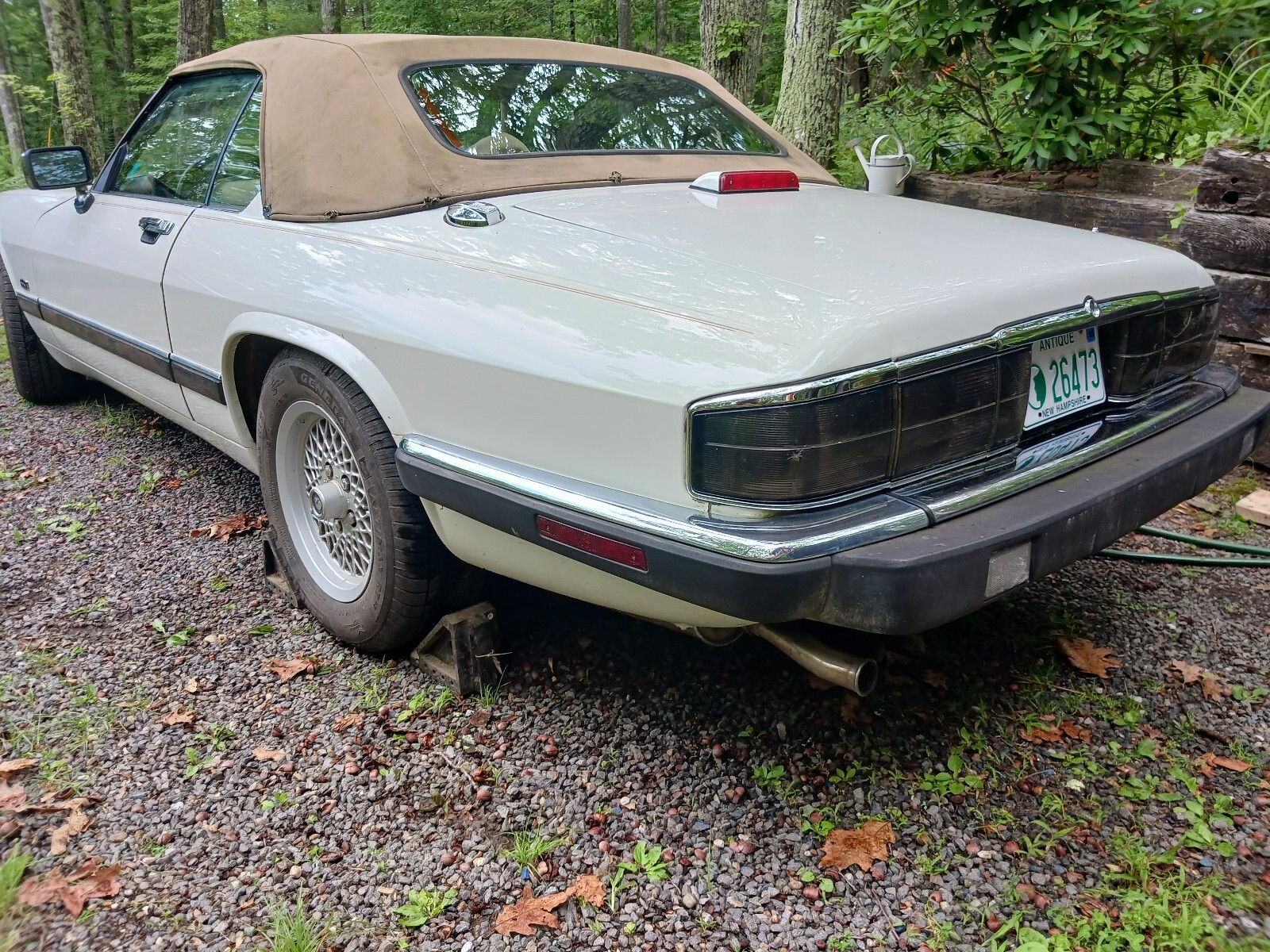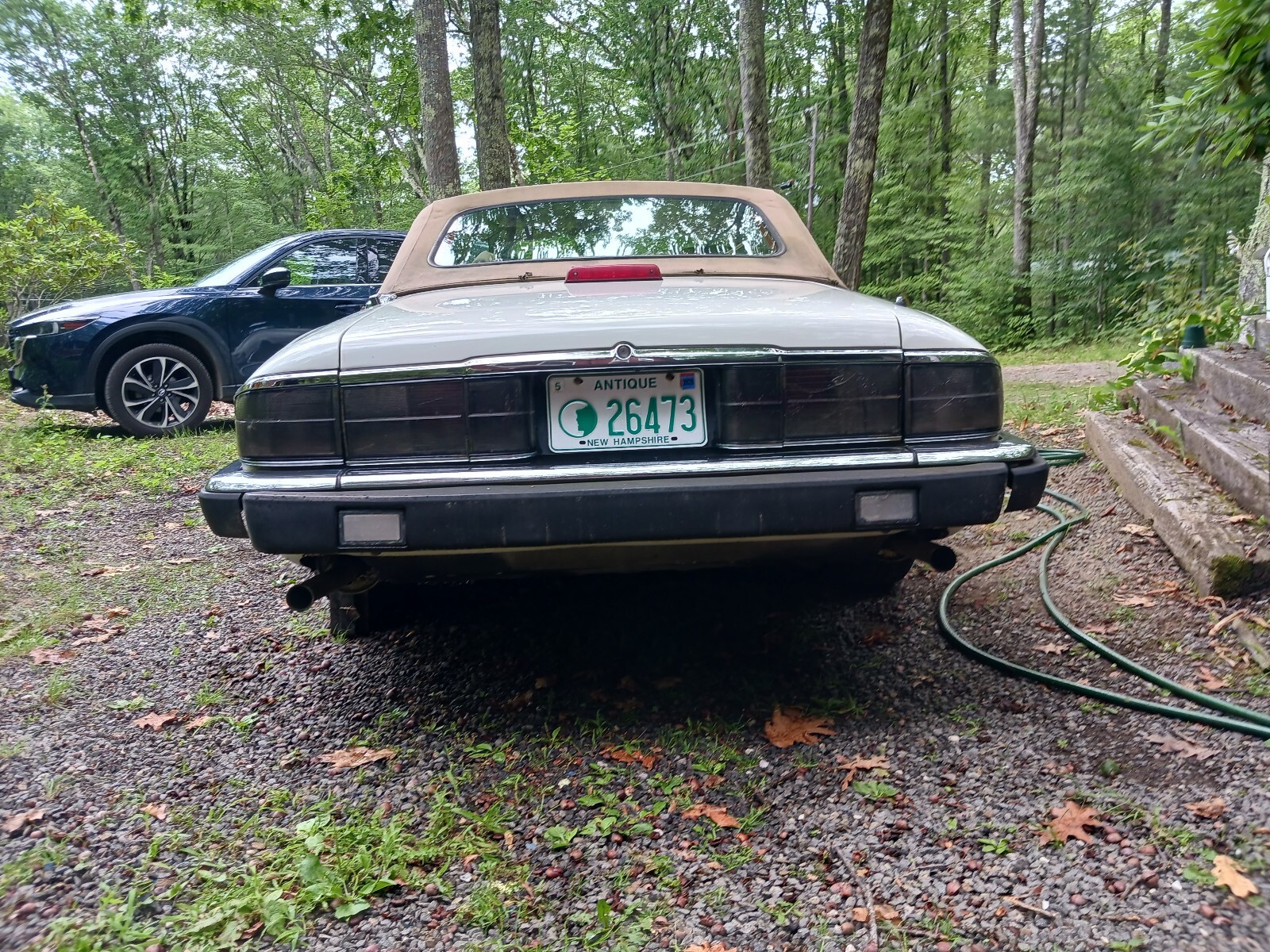 1992 Jaguar XJS, 5.3 V-12 Convertible. NO RESERVE! This is an unmolested Survivor. It can be driven and enjoyed as is or restored to its original glory. The only ‘restoration’ I have done is to have all the interior woodwork refinished by a man who retired from the wood finishing dept at Jaguar. They are gorgeous! The original leather seats were beginning to show their age, but instead of making a permanent change, I chose to cover them with seat covers done in the style of the British 4 speed Jaguars – ‘leather’ sides and fabric center insert. To me they are much more comfortable (cool). Even they are now showing signs of age with a small tear on the drivers seat (see photos), but they are easily replaced or you can work on restoring the original leather. The rest of the interior is in very reasonable shape. Stereo was replaced with a JVC CD player and the ashtrays were replaced with cup holders. Other details: It had a newly installed top when I bought it and it is still great. I added a tonneau cover. The body has no dings or dents and the paint is in very good shape for a 33 y.o. car. Headlight covers are a bit fogged like they all get, but I learned that a quick application of ATF brings back the original clarity (but it does need to be repeated). Chrome, bumpers are all good. Original Jaguar wheels are shod in General 215/65 tires with plenty of good tread left. Spare is also on a Jaguar rim, but from a different year. Front discs and pads replaced recently. All routine maintenance done faithfully. Car is recently inspected with current NH registration. It is “Title Exempt” being manufactured prior to 1999. Known issues: The ‘anti-lock brakes’ light is on and that feature no longer works. This is actually a GOOD thing as they were first generation anti-lock and were terrible. The ‘check engine’ light is on and is throwing a FF44. It has a fairly new O2 sensor on that side so I’m thinking it is either a ground issue or the heater wire on that side is compromised. Lots of info on this at Jag-lovers forum. It still runs fine. For some reason, both the voltmeter and the oil pressure gauge take about a mile or so to ‘wake up.’ After that they are fine and accurate. I did install a new alternator only a year ago so that is NOT the problem. The switches in the center console for windows and top are sometimes intermittent. They have been replaced but still sometimes take 2 or 3 pushes to work. I think all Jaguars have this problem, at least all XJSs. Some of the tabs that the tonneau cover clips into are torn. This does not really effect the fit of the cover. I did have a mouse issue one year – mostly the insulation on the hood and a couple of blankets that were in the boot behind the seats. The blankets I threw out, the insulation could easily be replaced, but I haven’t. I did not find any real damage to wiring. I got some vibrating ‘mole chasers’ that seemed to work last winter. I’ll give them to you with the car. Happy to meet you any where within 50 miles for test drive or inspection. |