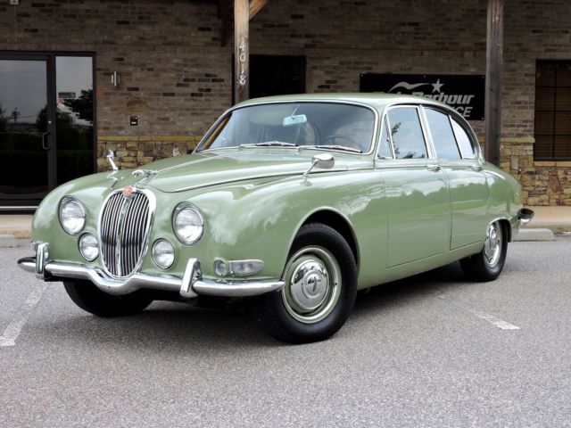 Presented is a beautifully restored 1967 Jaguar 3.4s Sports Sedan. Finished in stunning Willow green with dark green Connolly hides Wilton Wool carpets burled walnut dash and accents. Photos of the complete restoration come with the car. With a rare 4-speed transmission the 3.4s drives and handles like a dream sharing many engineering and mechanicals from the E-type one of the greatest sports cars of all time. There are several blemishes that need to be corrected in order to bring it up to the level it deserves. 2 owners from new Rare 4-speed transmission 3.4 liter engine Fully independent suspension New tires The Jaguar S-Type was produced by Jaguar Cars in the United Kingdom from 1963-1968. It was mechanically more sophisticated than the Mark II Sedan offering buyers a more luxurious alternative to the marques similar sedan model. Without the size and cost of the Mark X the S sold alongside the Mark II as well as the 420 released in 1966. The S-Type used a mid-scale version of the Mark X independent rear suspension to replace the Mark IIs live rear axle. It featured longer bodywork among other styling and interior changes. a 3.4 liter double overhead cam in line 6 cylinder engine fed through dual SU carbs the engine produced 210 horsepower. A total of just 1008 S-Types were produced in 1967 |