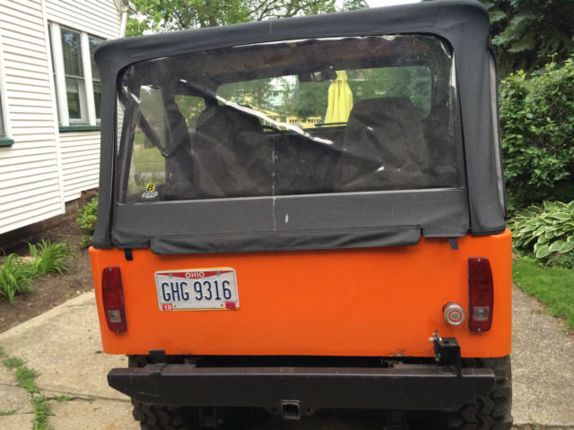 A 1974 Jeep CJ 5. 4 speed manual transmission. Is in good condition. Fiberglass body, o no rust. Could use some wiring work if you plan on driving it on roads. The speedometer doesn't work, nd the lights in the back do not come on, nless you put on the brights. The gearing is low, o not a good daily driver; but great for off road play. Lock out hubs up front. V-8 engine. The emergency brake isn't hooked up. Part roll cage.This listing is also on Craigslist and can be taken down at any time. please email with any other questions.